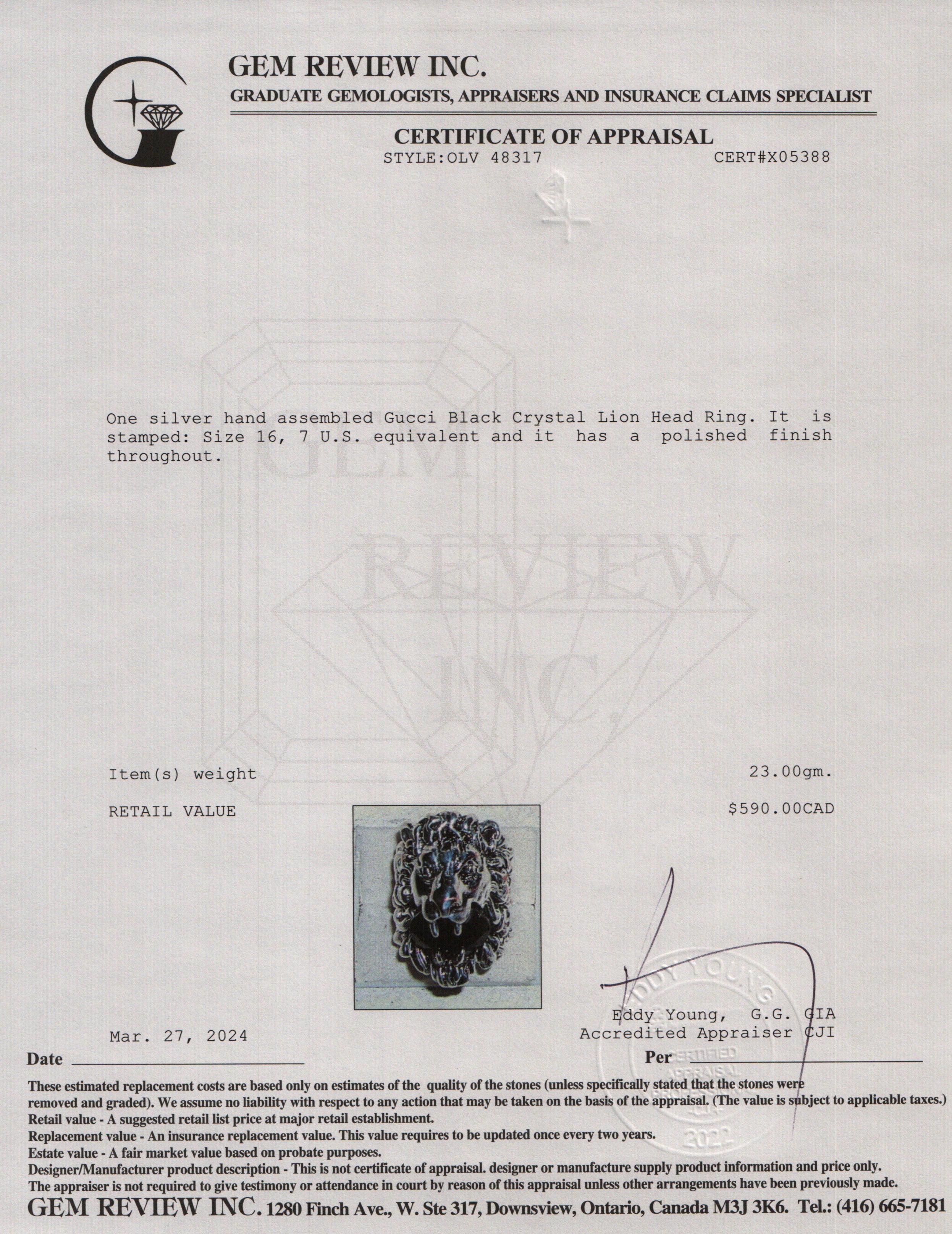 Silver-Tone Metal Black Crystal Lion Head Ring, Size 16 7