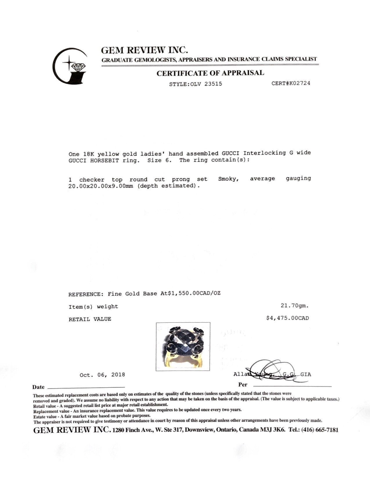Gucci Smoky Quartz Horsebit Cocktail Ring