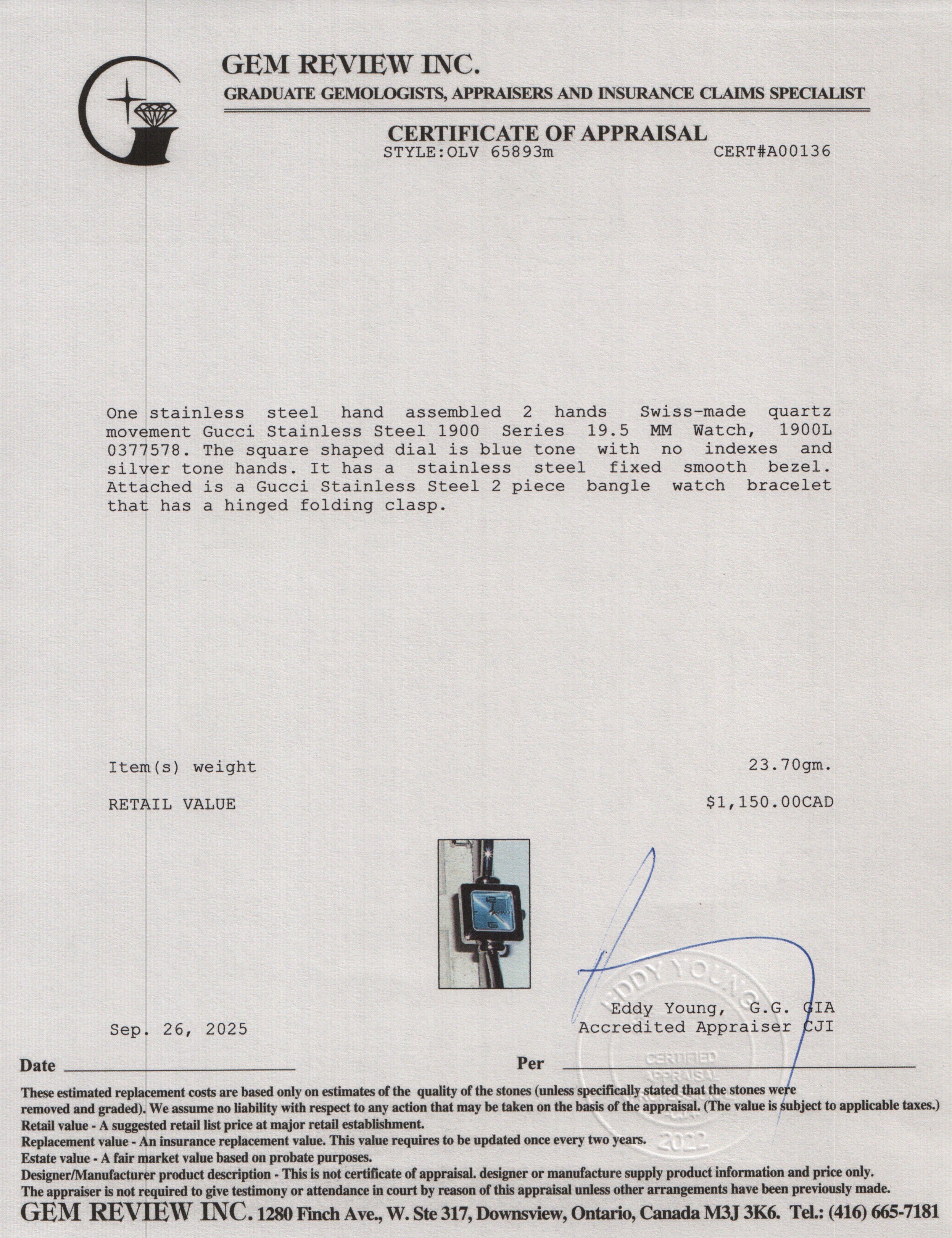 Stainless Steel 1900 Series 19.5 MM Watch Blue Dial