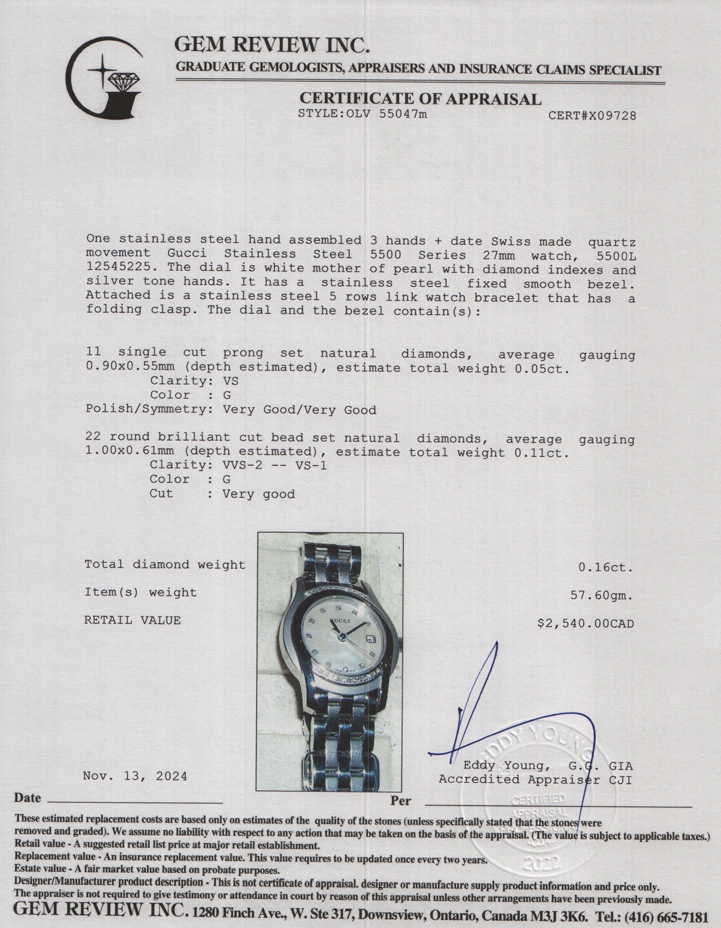 Stainless Steel 5500 Series Diamond Bezel & Diamond Mother of Pearl Dial 27 MM Watch