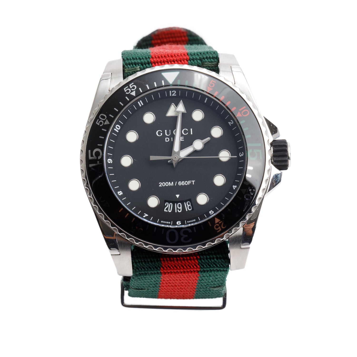 Stainless Steel Dive 45 MM Quartz Watch Green & Red Web Nylon Band w/ Box & Papers YA136209