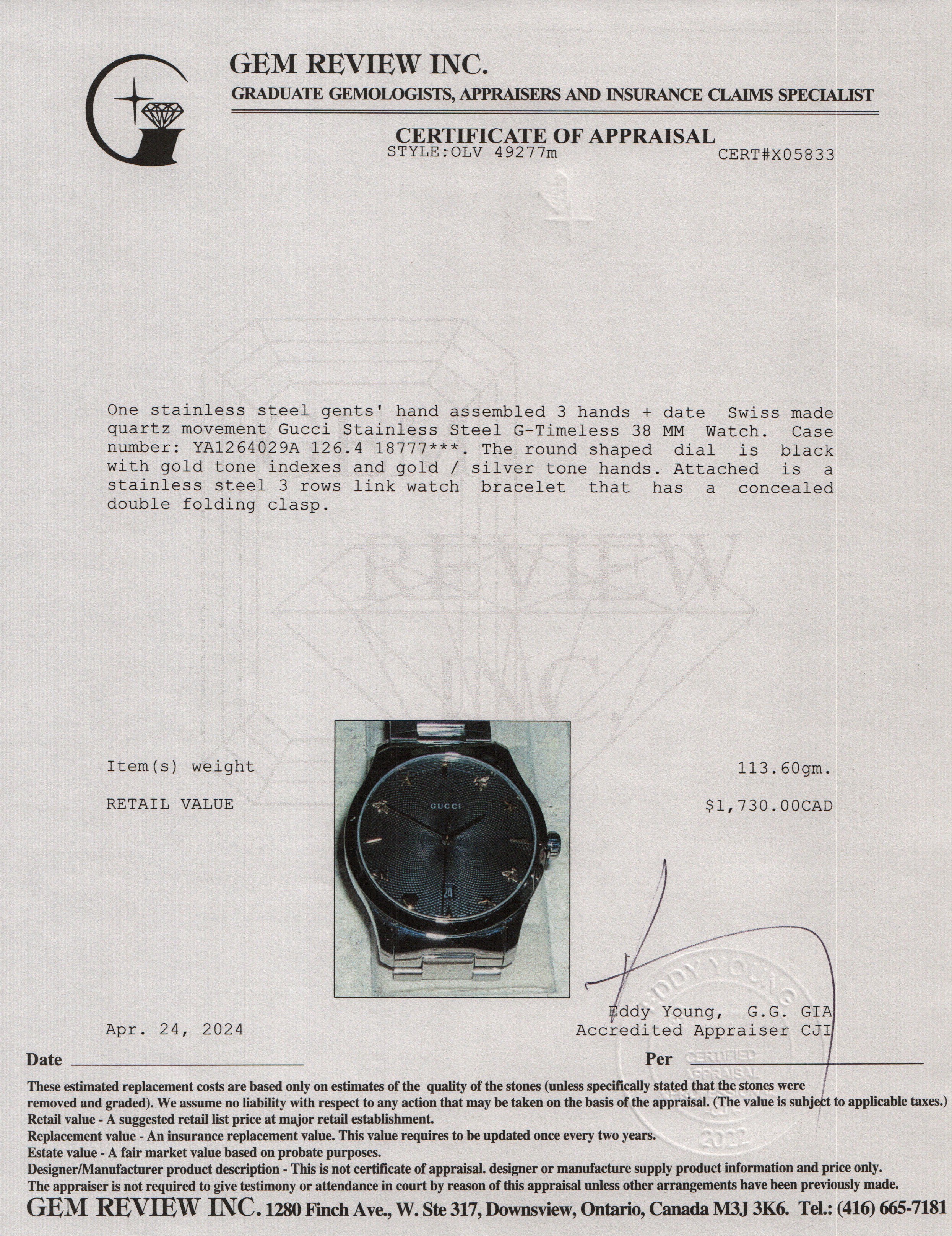 Stainless Steel G-Timeless 38 MM Watch w/ Box & Papers