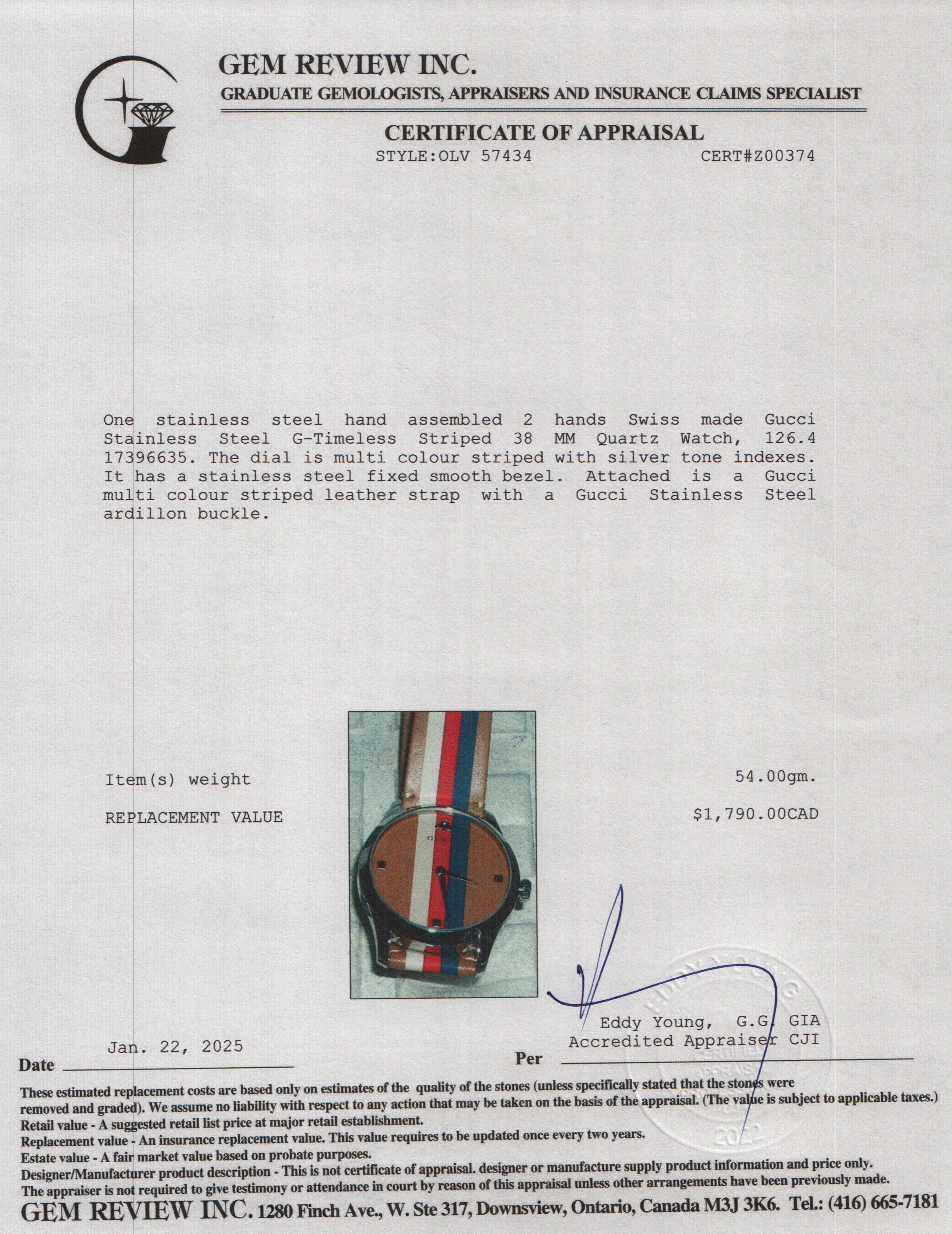 Stainless Steel G-Timeless Striped 38 MM Quartz Watch