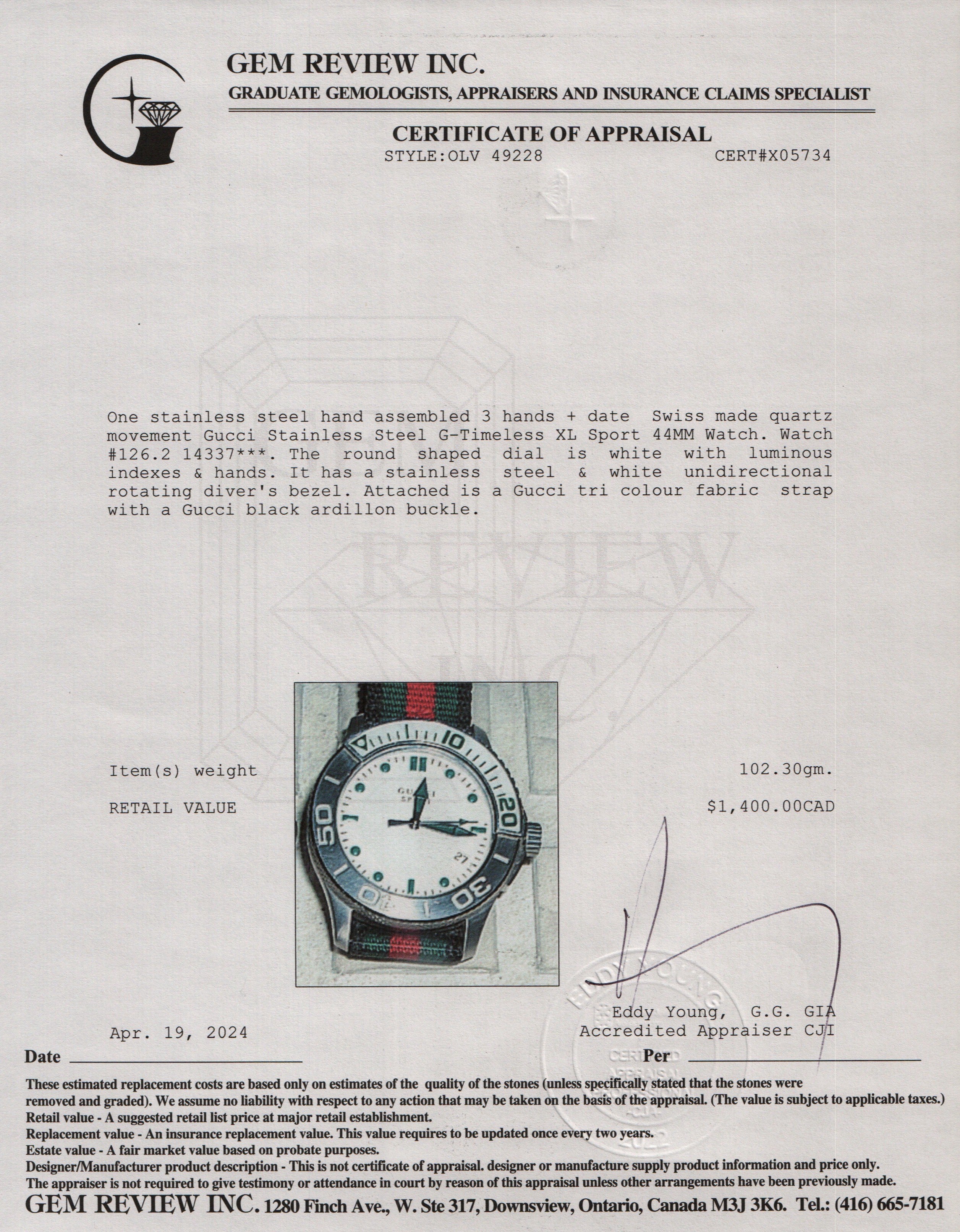 Stainless Steel G-Timeless XL Sport 44 MM Watch w/ Box & Papers