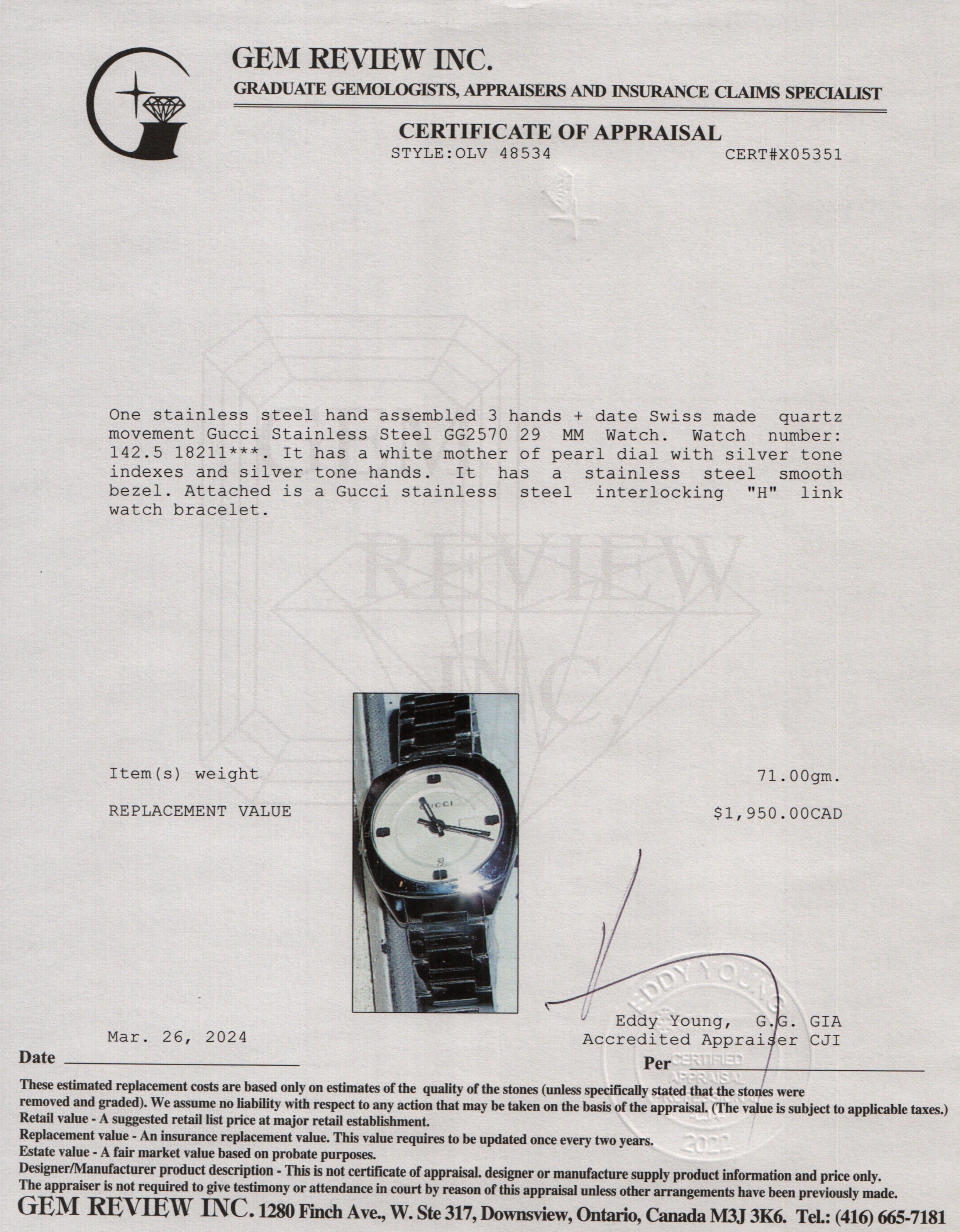 Stainless Steel GG2570 29 MM Watch w/ Box