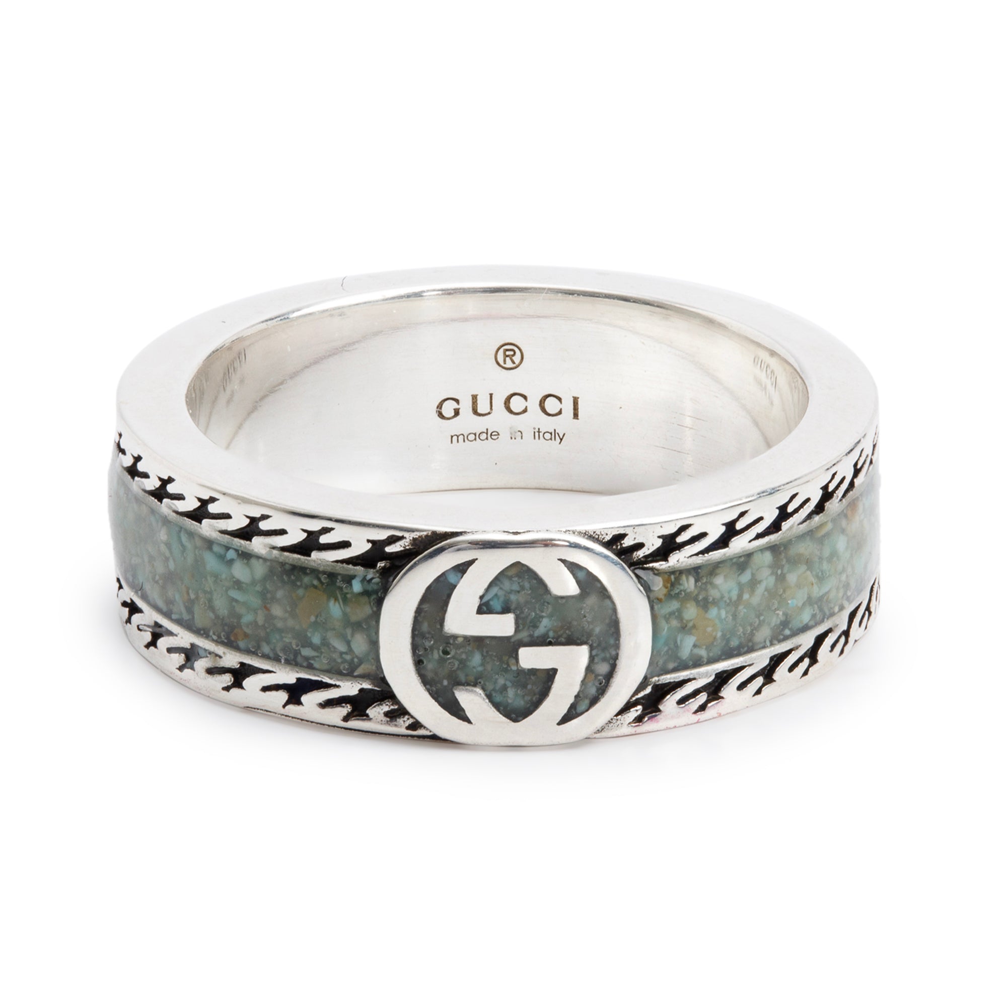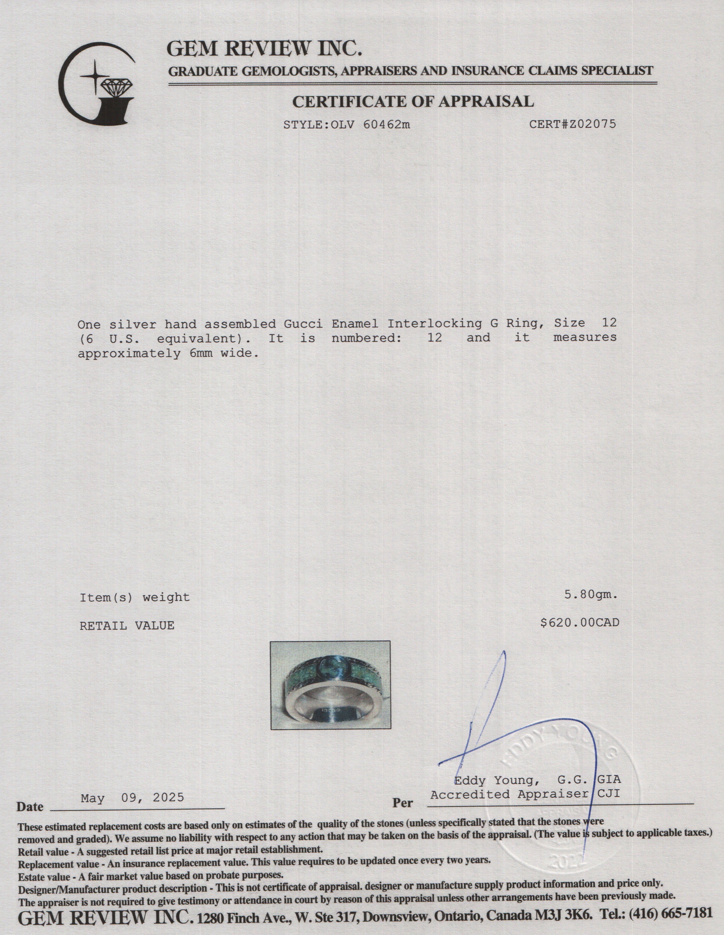 Sterling Silver Enamel Interlocking G Ring, Size 12 6