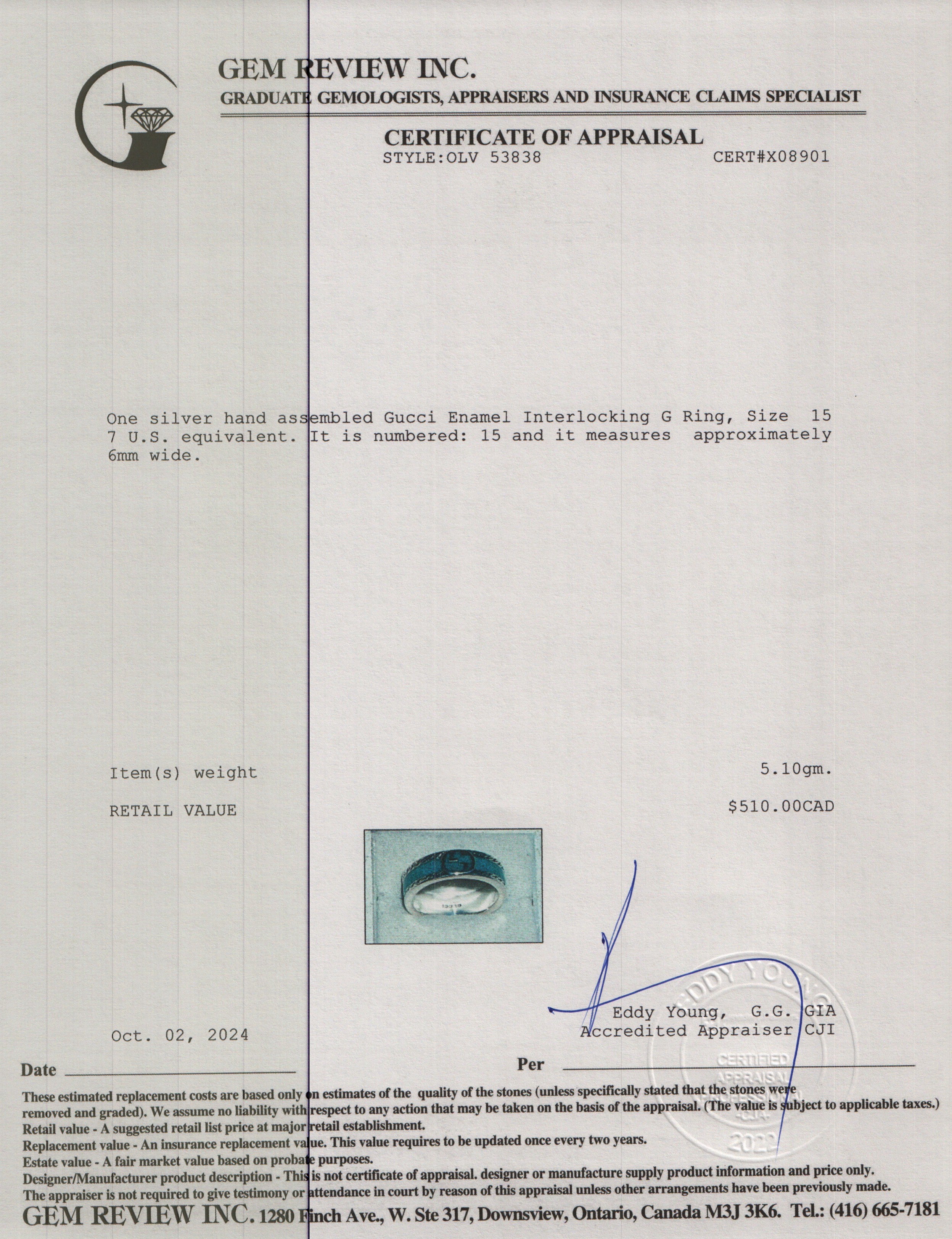 Sterling Silver Enamel Interlocking G Ring, Size 15 7