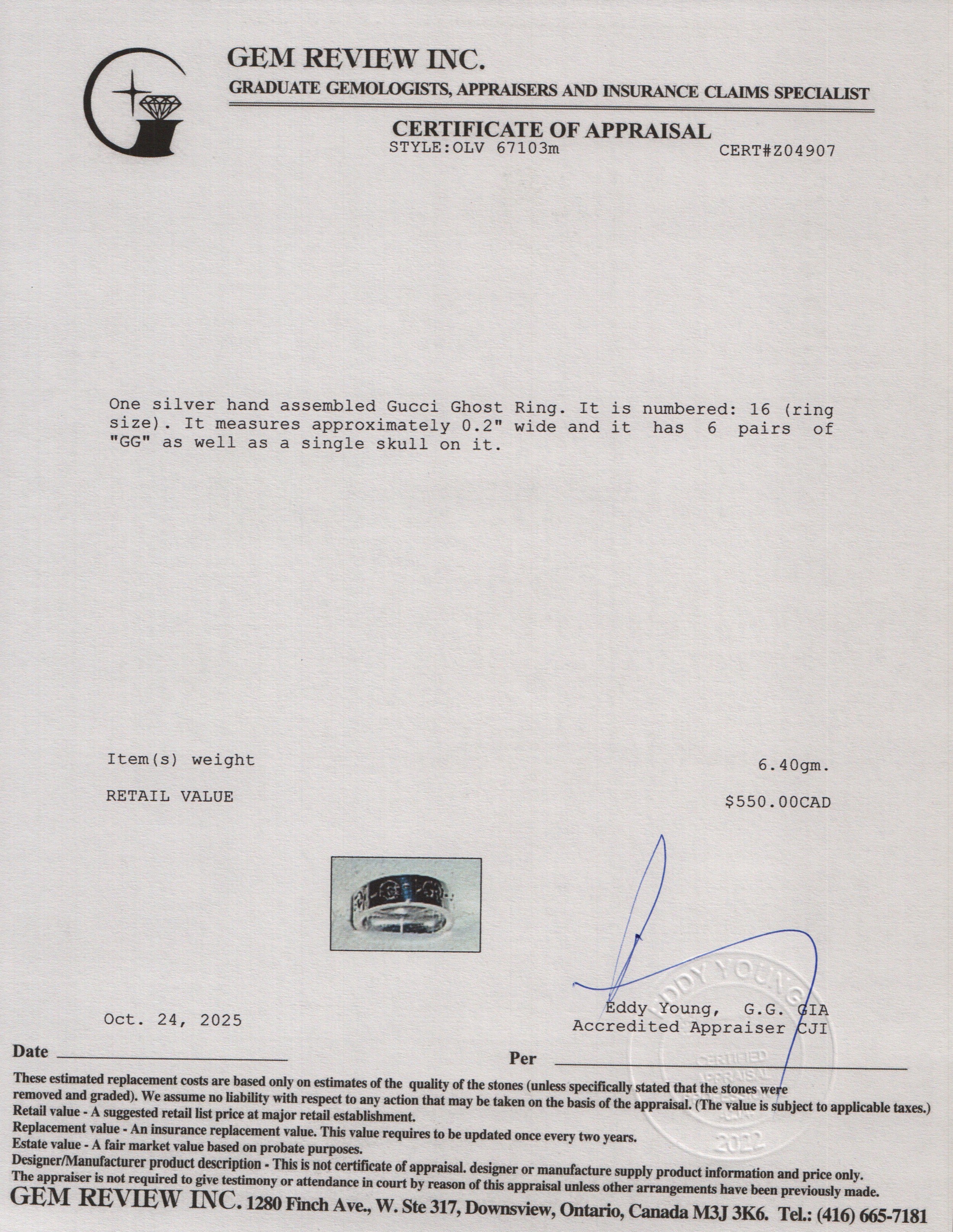 Sterling Silver Ghost Ring, Size 7.5 w/ Box