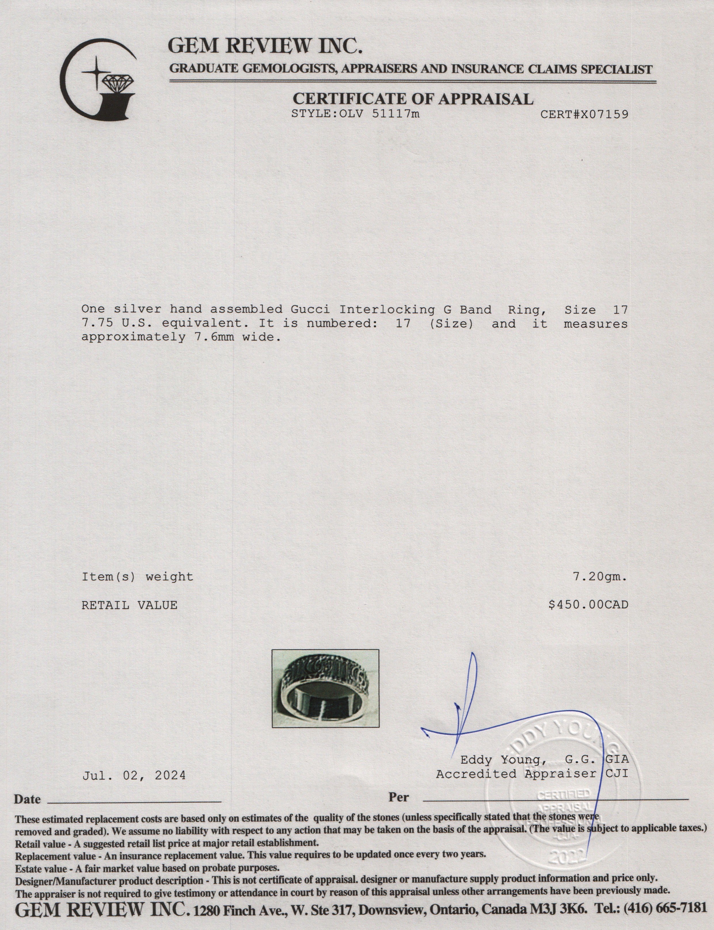 Sterling Silver Interlocking G Band Ring, Size 17 7.75