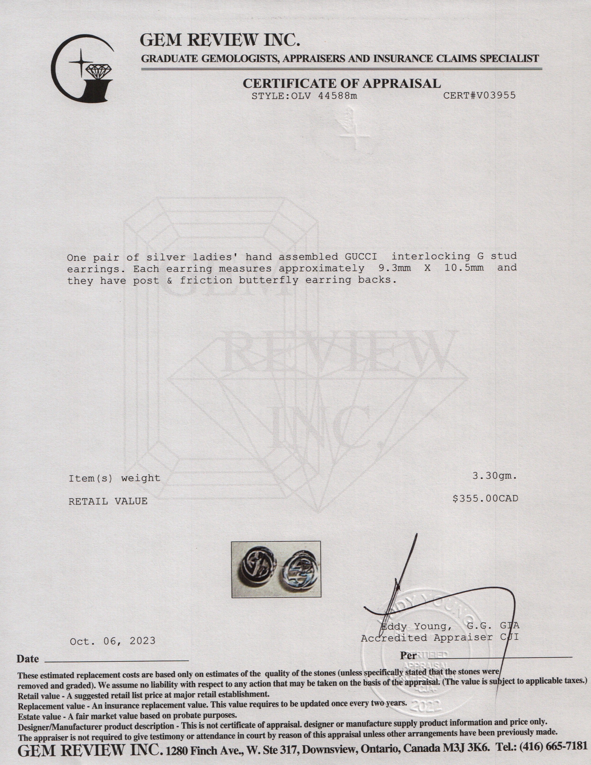 Sterling Silver Interlocking G Stud Earrings w/ Box