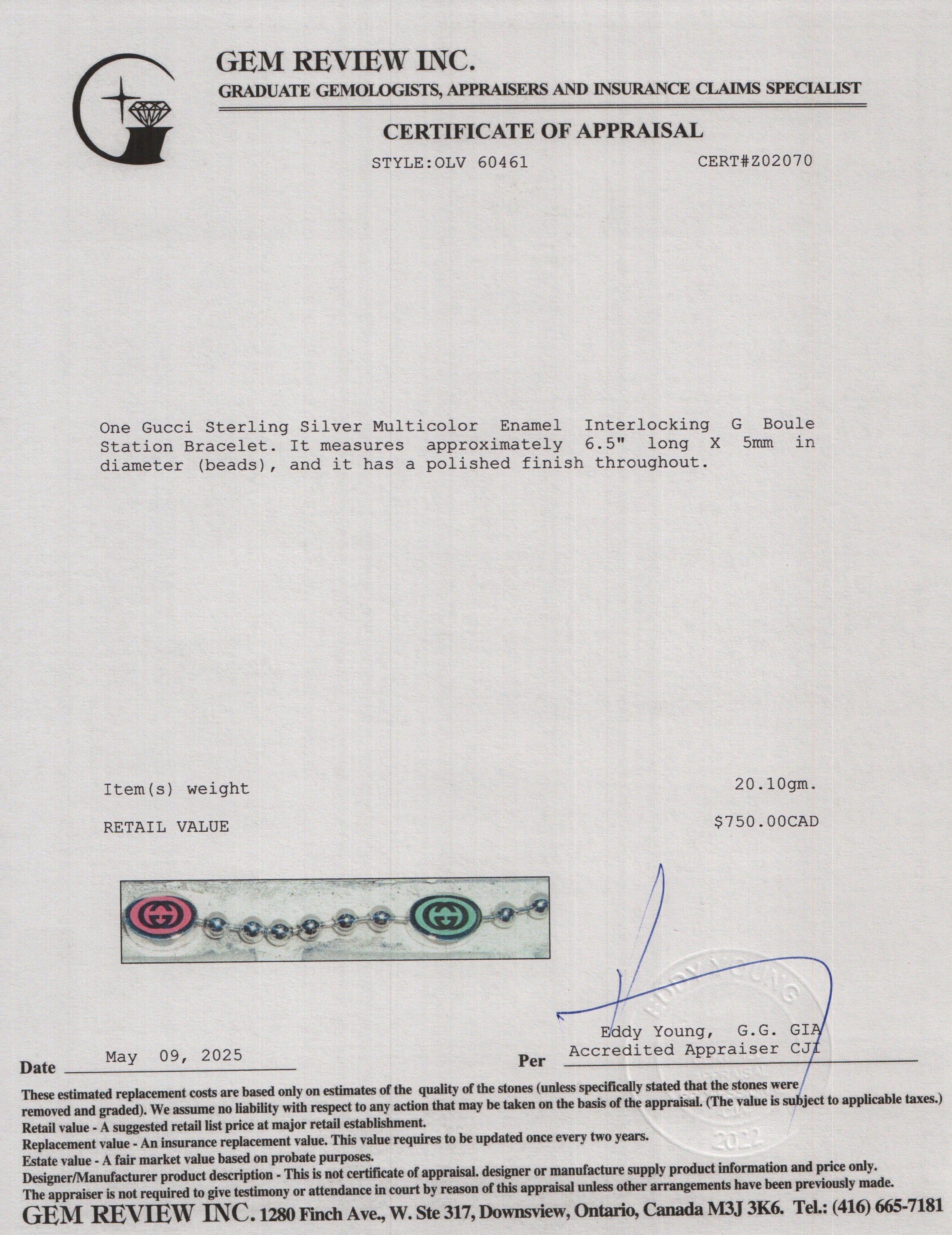 Sterling Silver Multicolor Enamel Interlocking G Boule Station Bracelet
