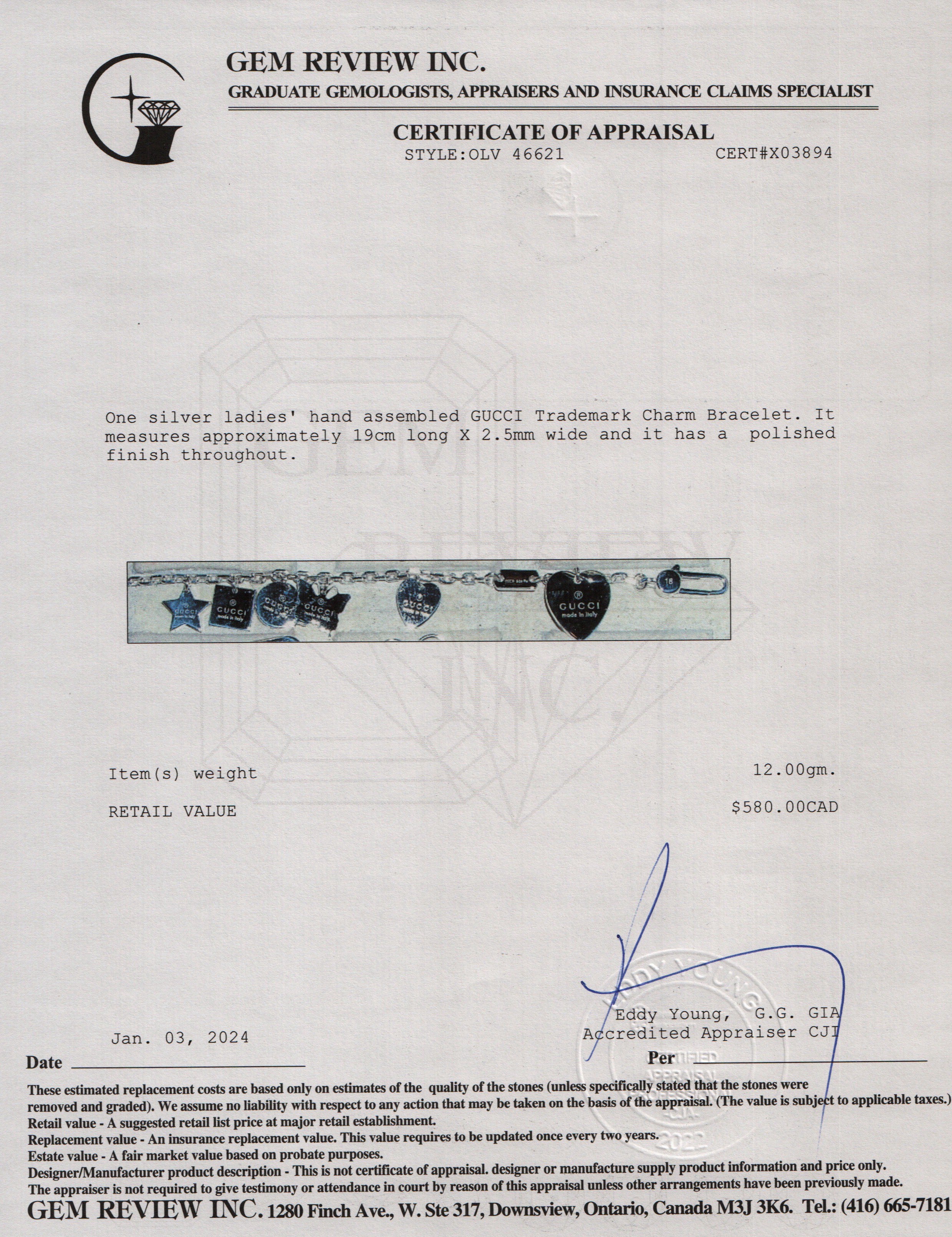 Sterling Silver Trademark Charm Bracelet w/ Box