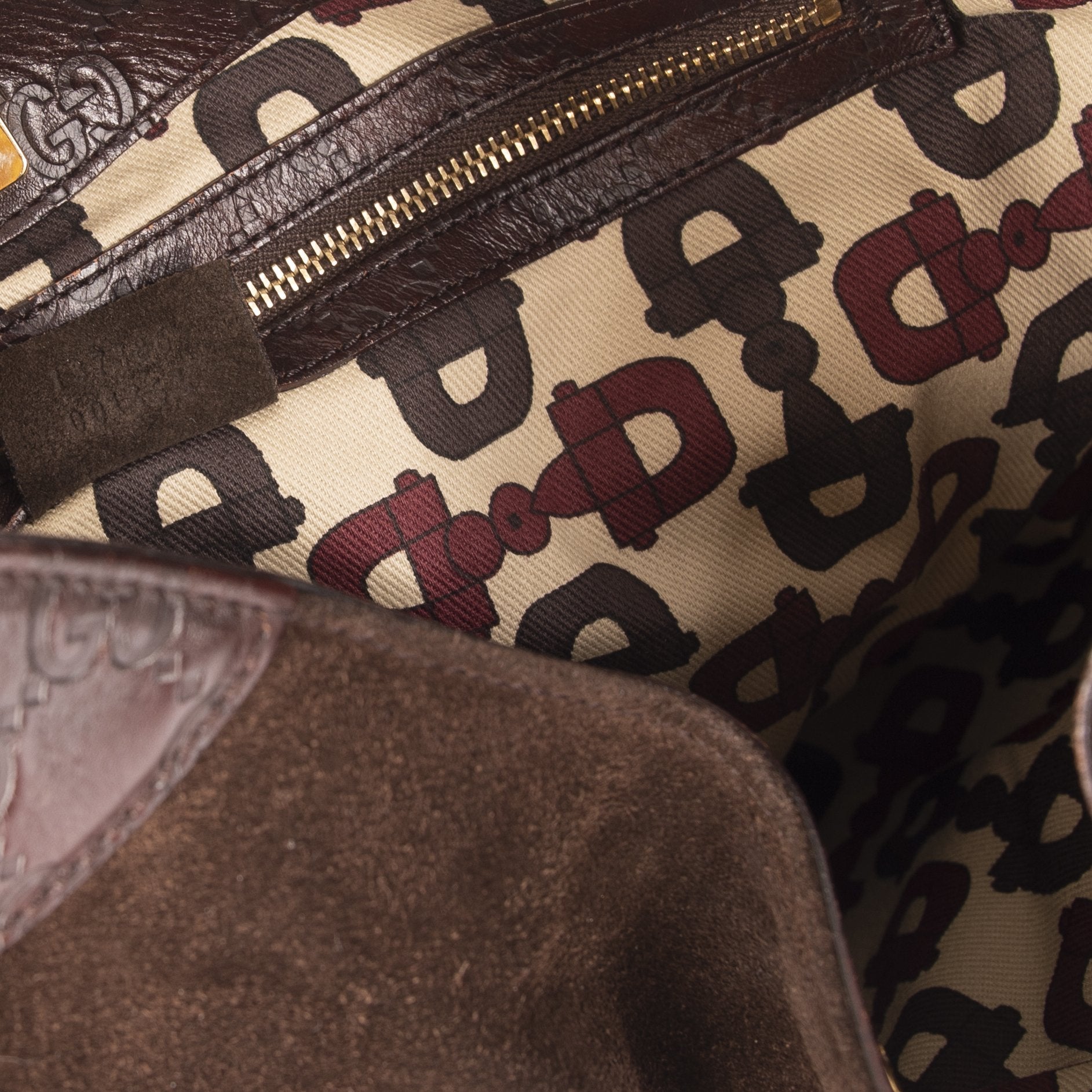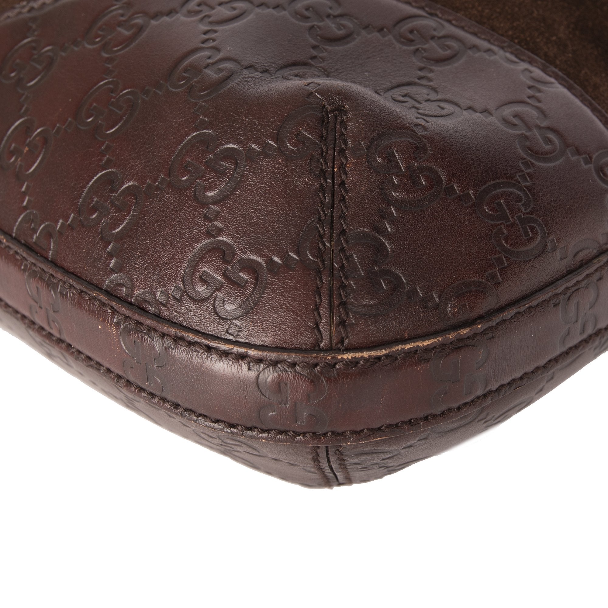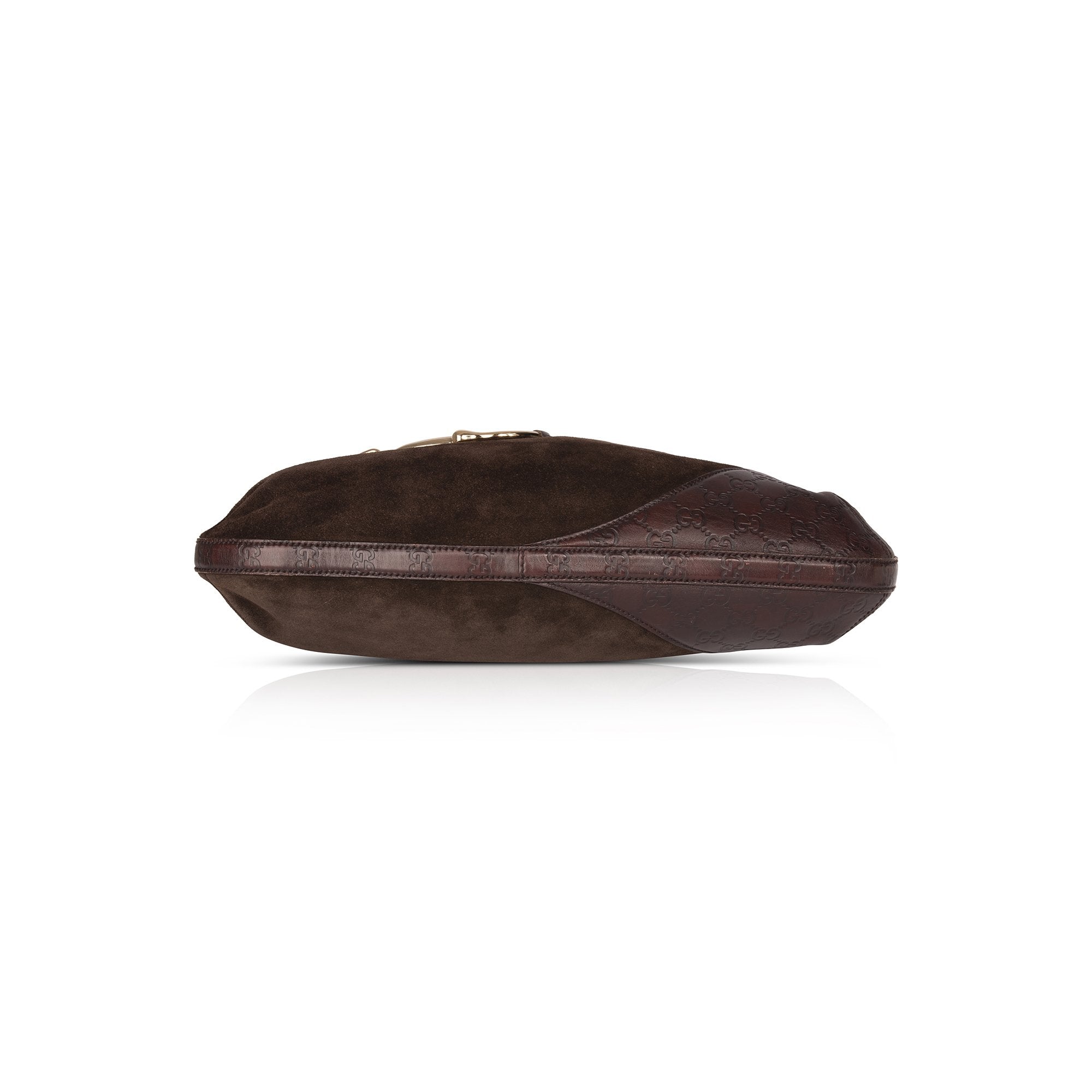Condition: Good; slight surface scratches at hardware; some scuffs at exterior leather trim and shoulder strap; slight wear at exterior suede; clean interior