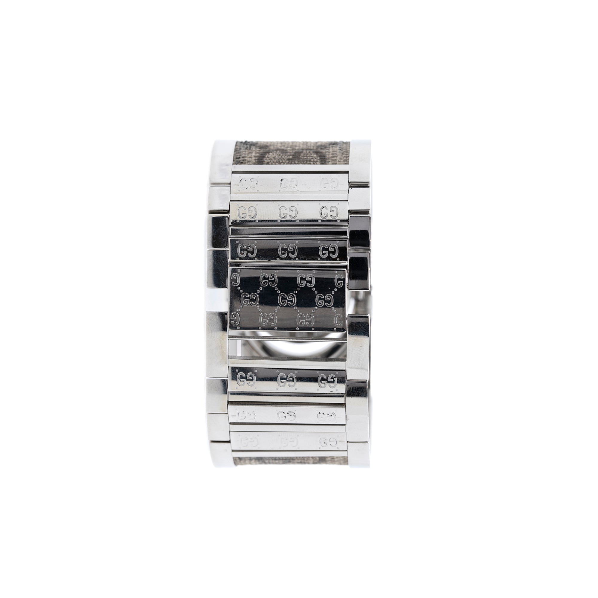 - Stainless Steel and Beige GG Pattern Bracelet with Hinged Clasp