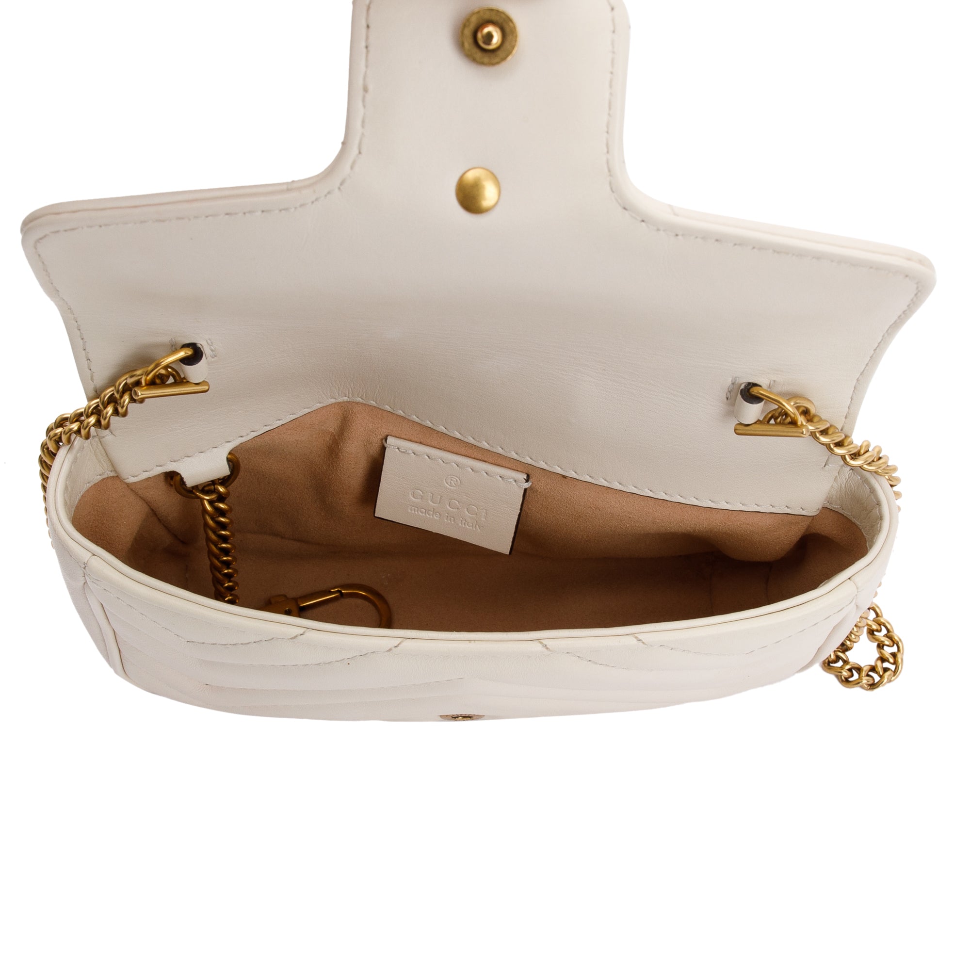 White GG Marmont Matelasse Leather Super Mini Bag w/ Box