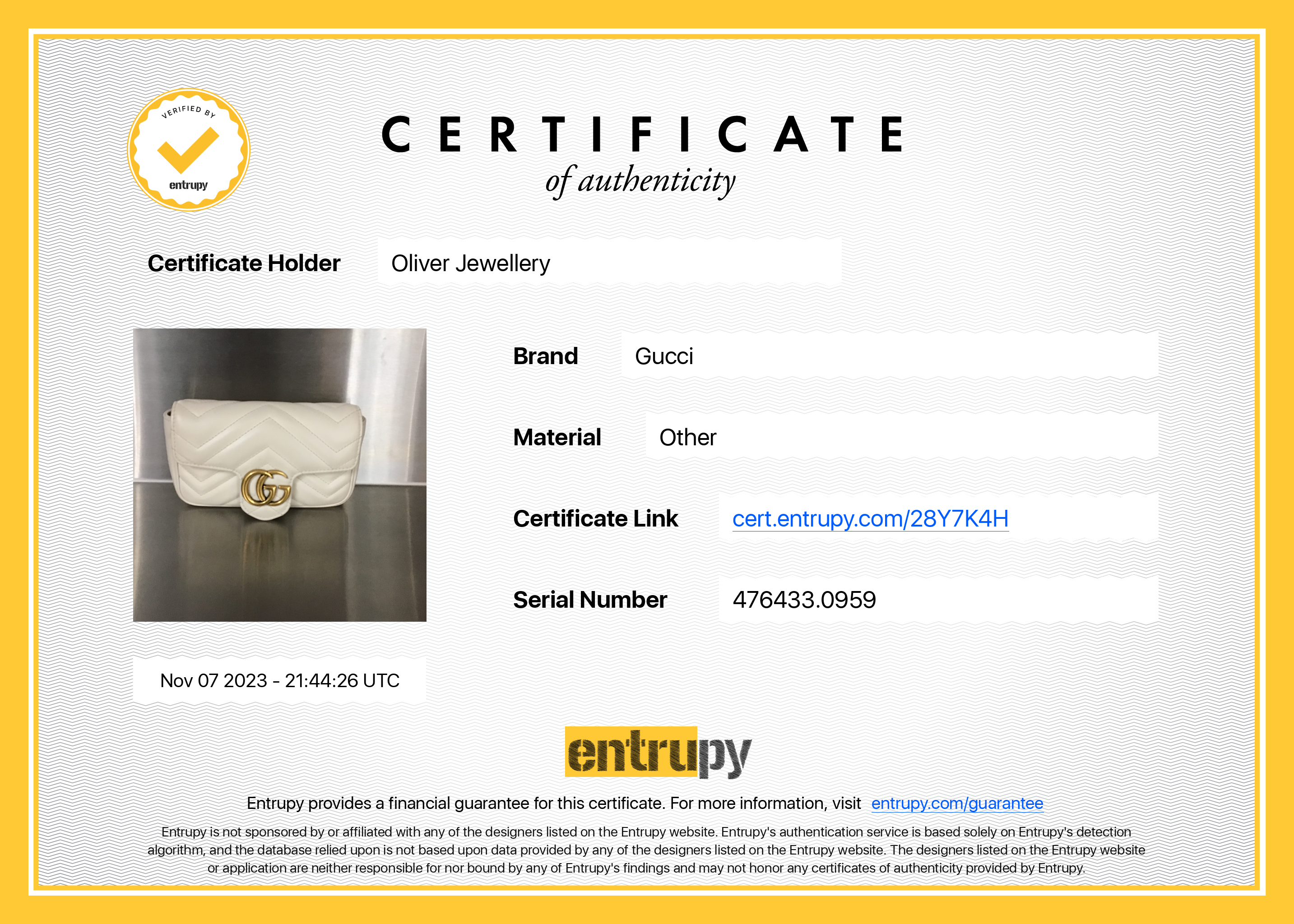 Box, Dust Bag, Chain Shoulder Strap, Key Ring, Booklet, Entrupy Certificate of Authenticity