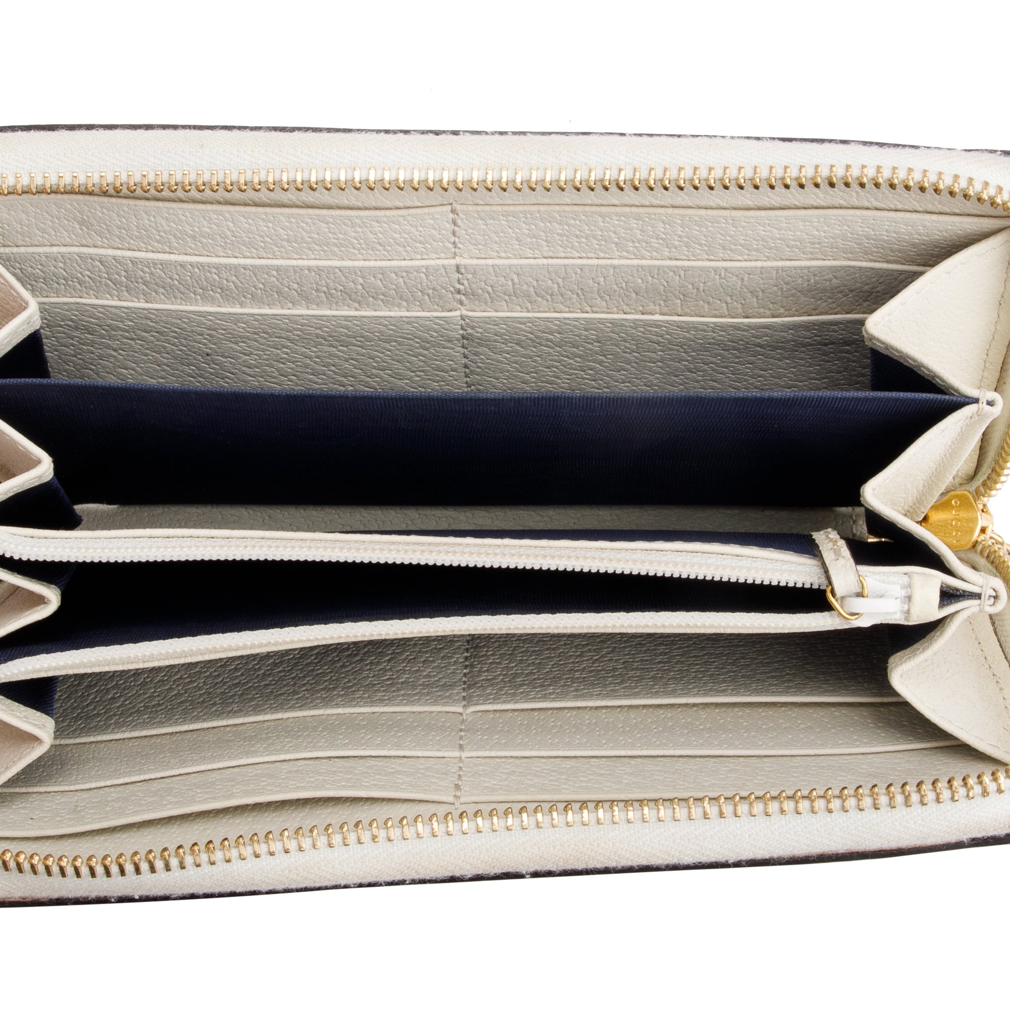 White Leather Web Ophidia GG Zip Around Wallet w/ Box & Receipt
