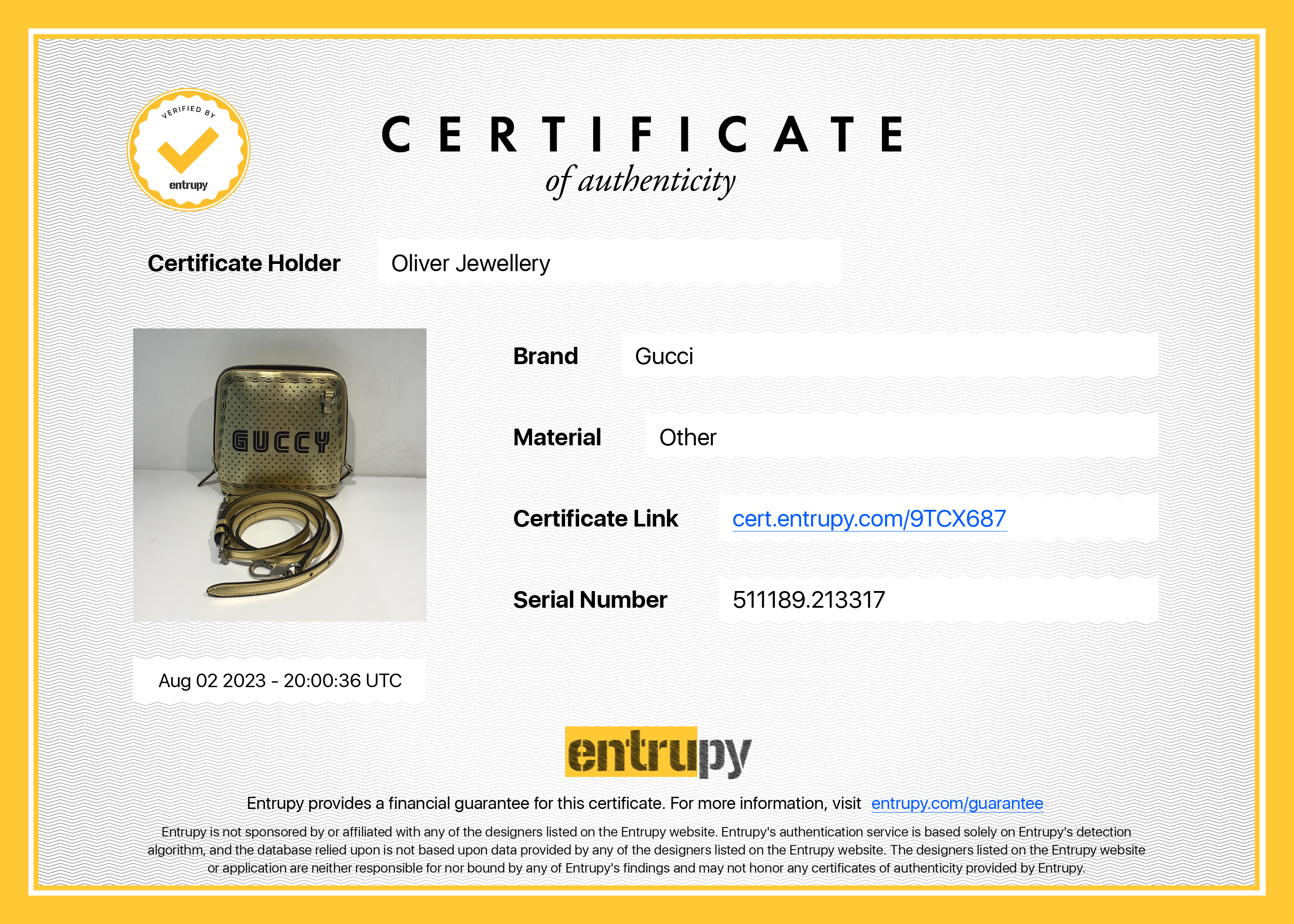 Included Items: Original Gucci Dust Bag & Entrupy Certificate of Authenticity: 9TCX687