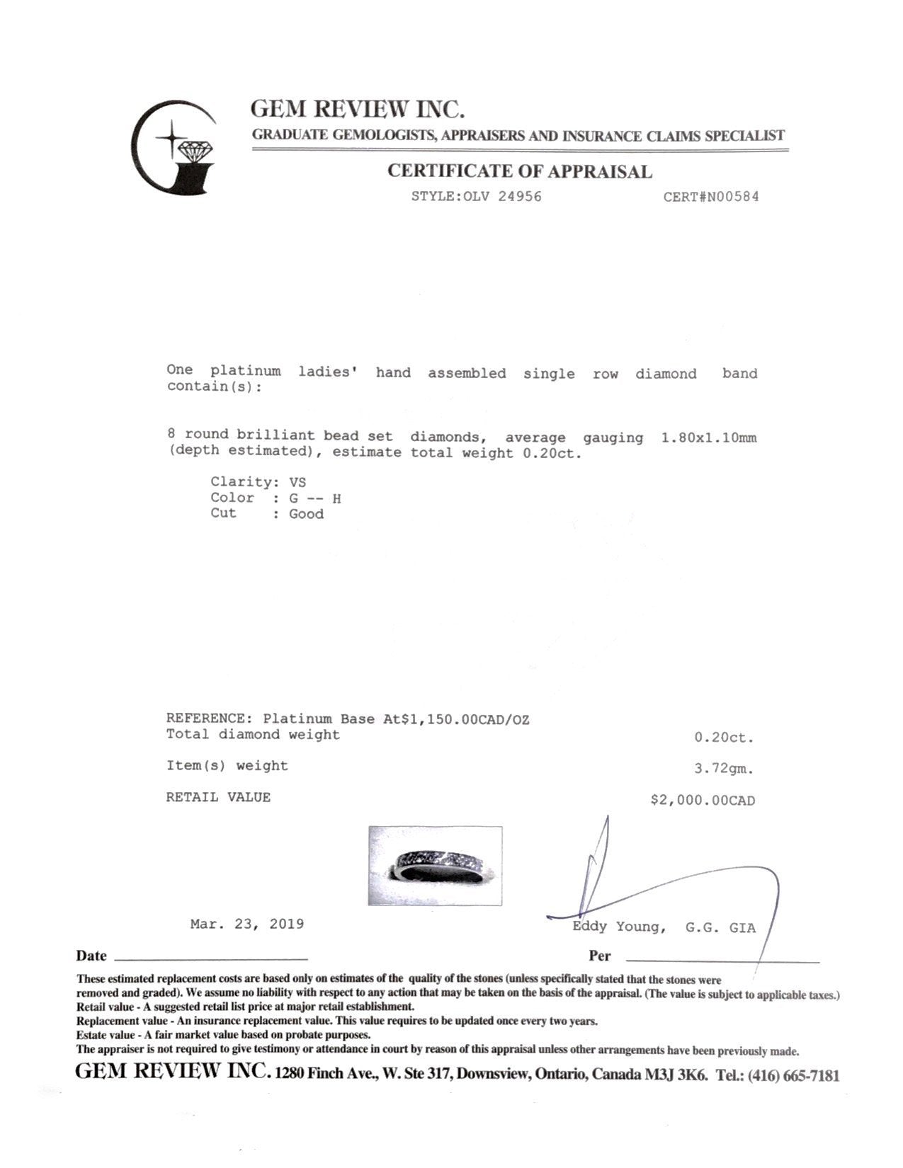 - 8 Round Brilliant Cut Diamonds Totalling Approximately 0.20 ct. of VS Clarity, G-H Colour, Good Cut