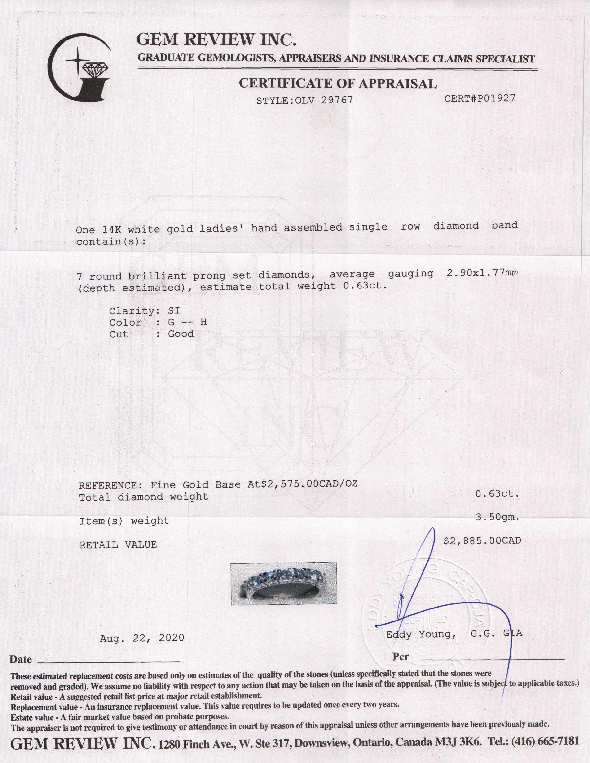 - 7 Round Brilliant Cut Diamonds Totalling Approximately 0.63 ct. of SI Clarity, G-H Colour, Good Cut