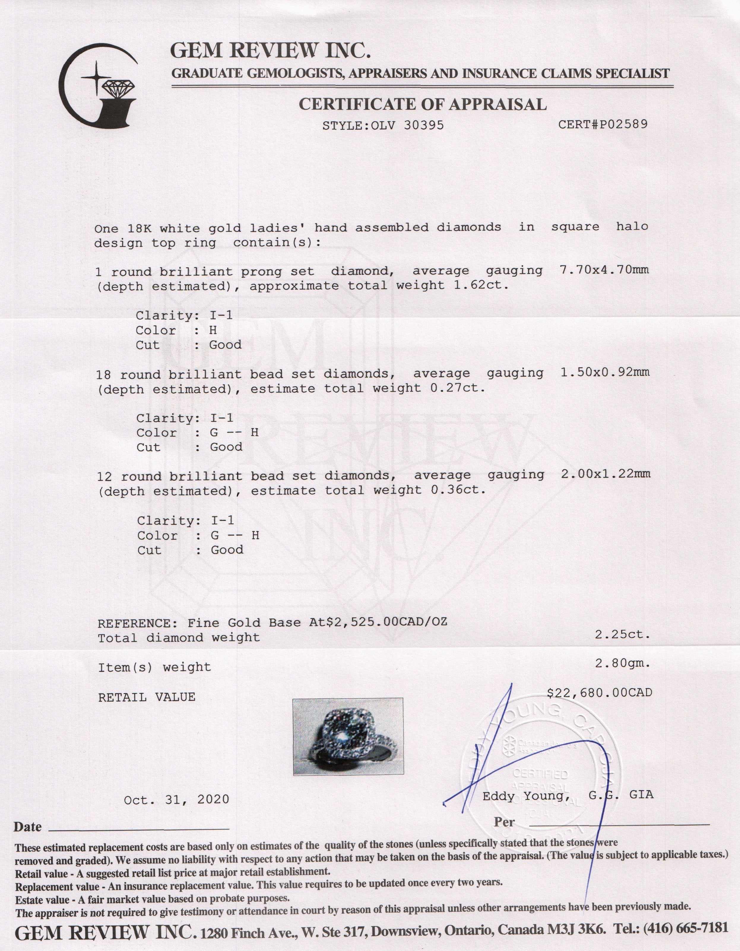 - 1 Round Brilliant Cut Diamond Weighing Approximately 1.62 ct. of I1 Clarity, H Colour, Good Cut