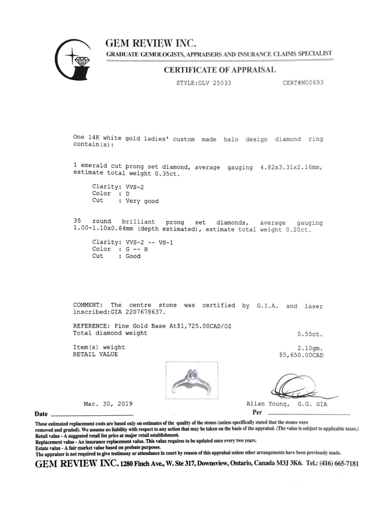 Included Items: GIA Diamond Certificate & Gem Review Appraisal