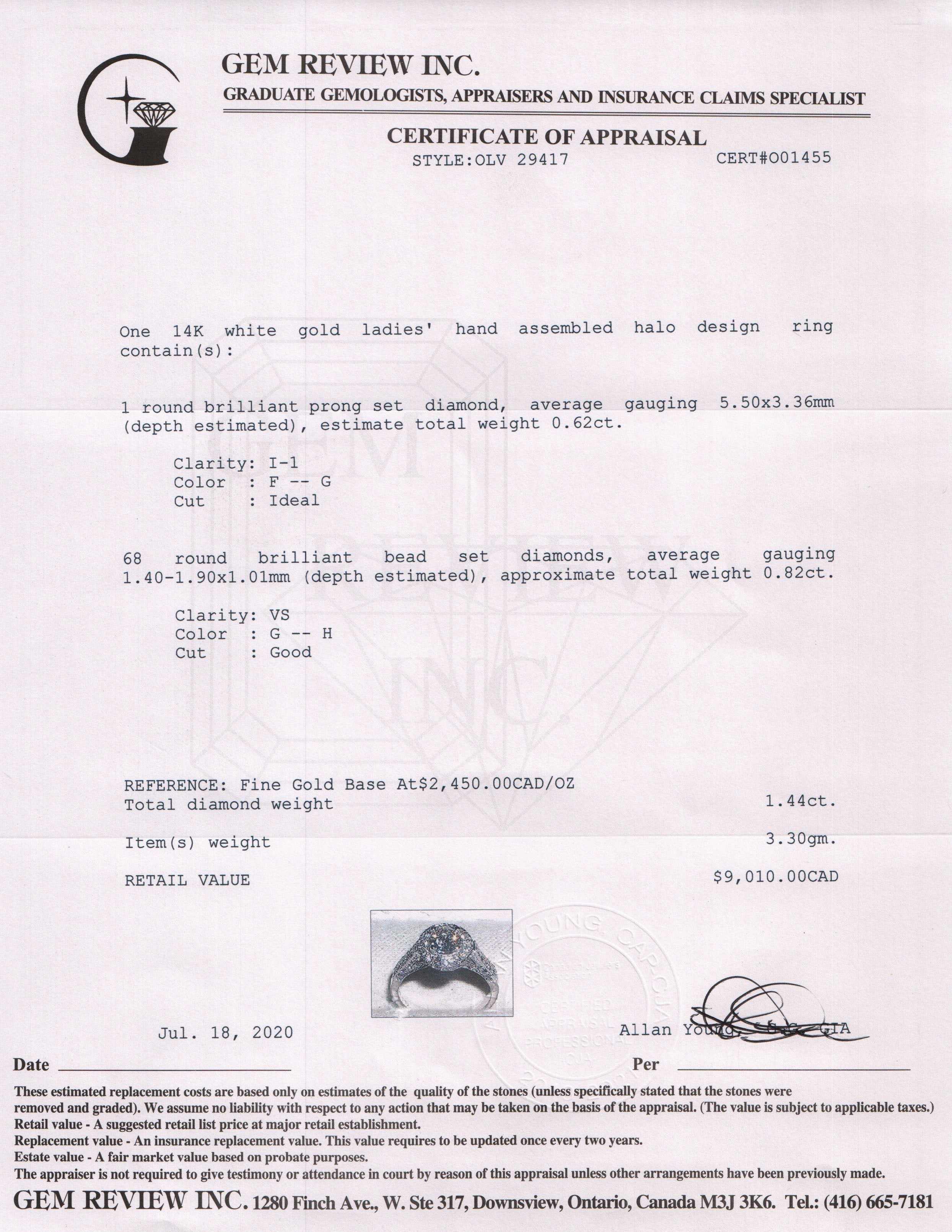 - 1 Round Cut Diamond Weighing Approximately 0.62 ct. of I1 Clarity, F-G Colour, Good Cut