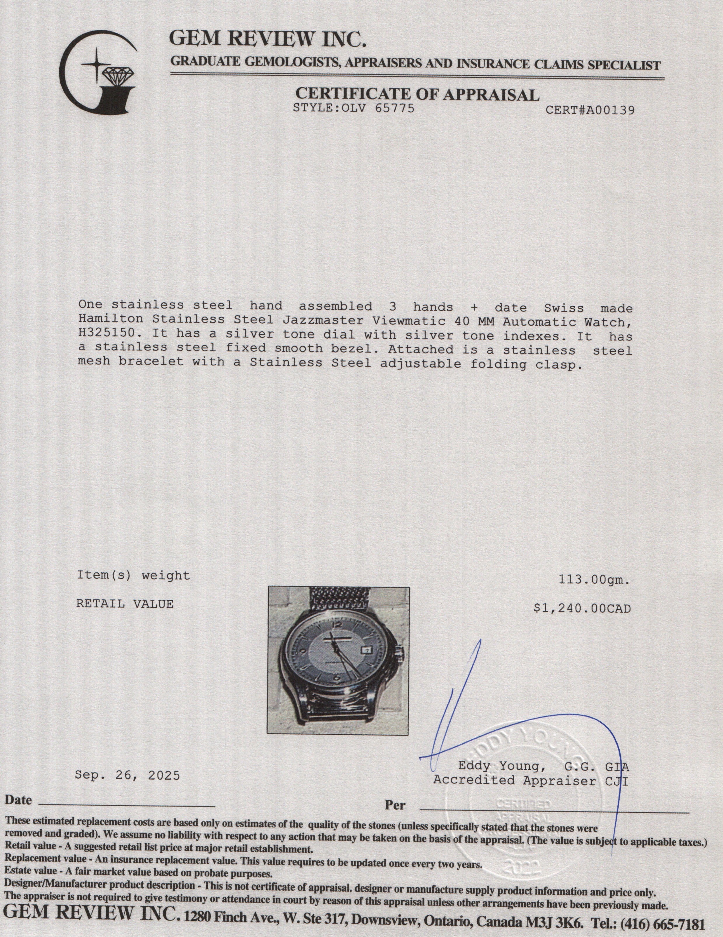 Stainless Steel Jazzmaster Viewmatic 40 MM Automatic Watch H325150