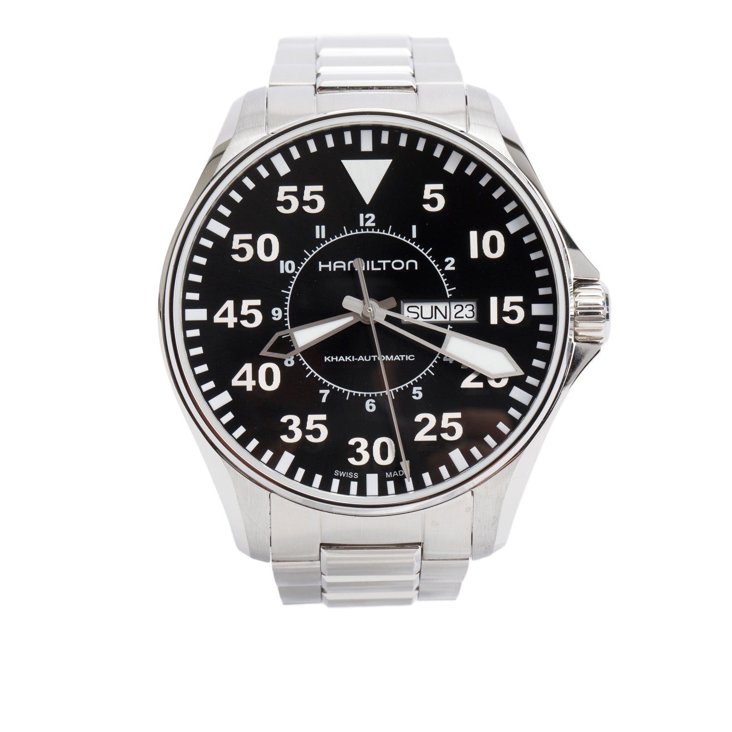 Stainless Steel Khaki Aviation Night Pilot Day Date 46 MM Automatic Watch H647150 w/ Box