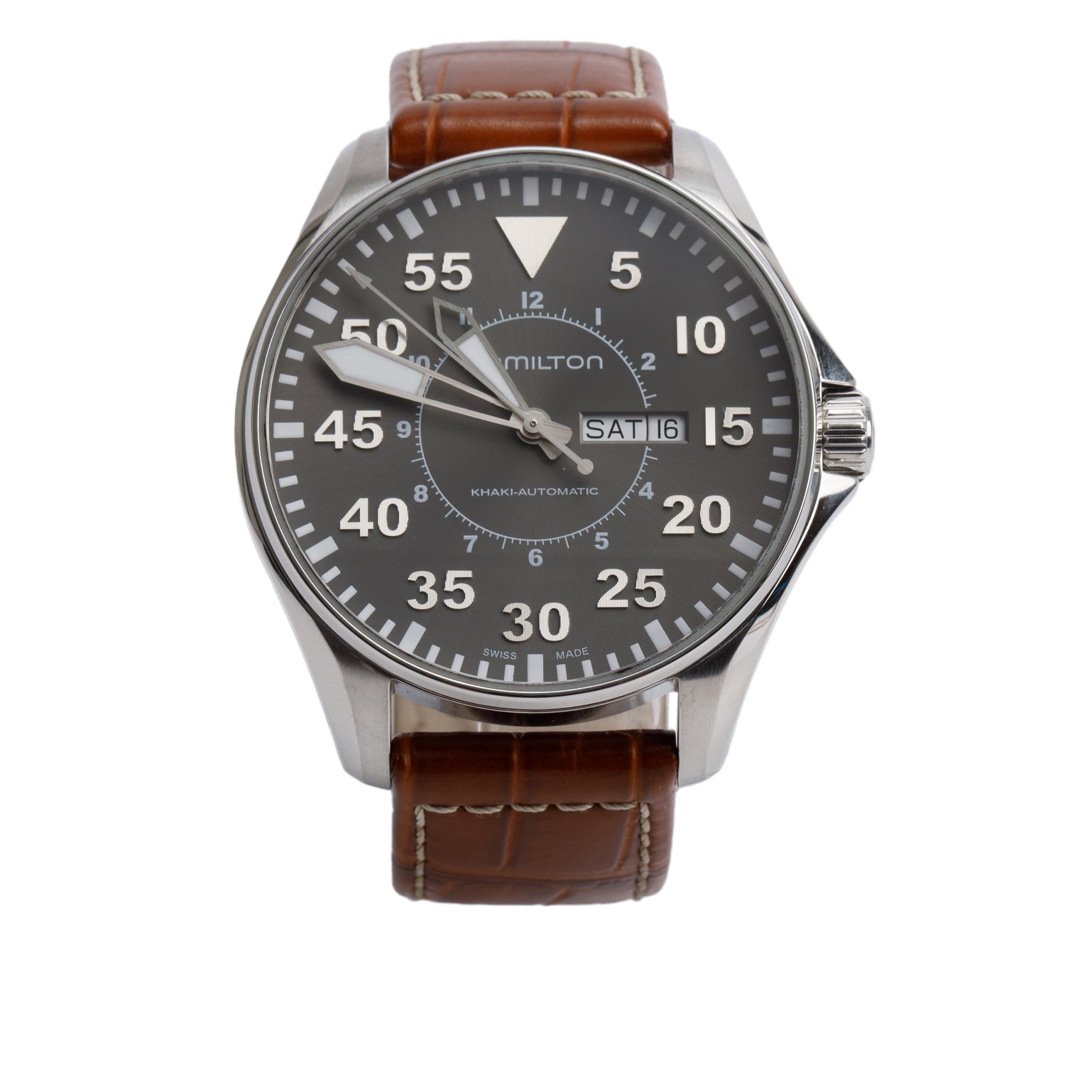 Stainless Steel Khaki Aviation Pilot Day Date 46 MM Automatic Watch 2836 w/ Box & Papers