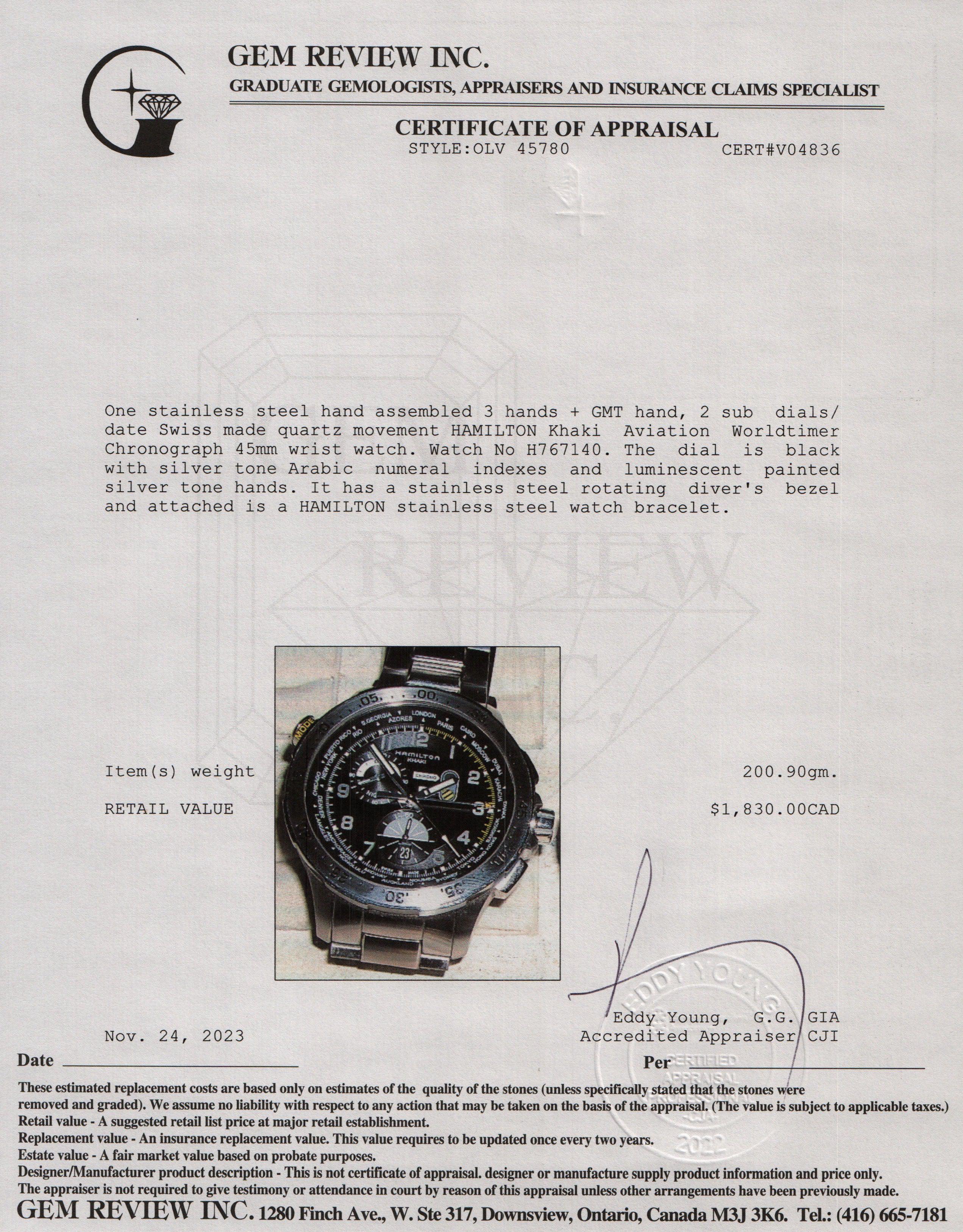 Stainless Steel Khaki Aviation Worldtimer Chronograph 45 MM Watch w/ Case