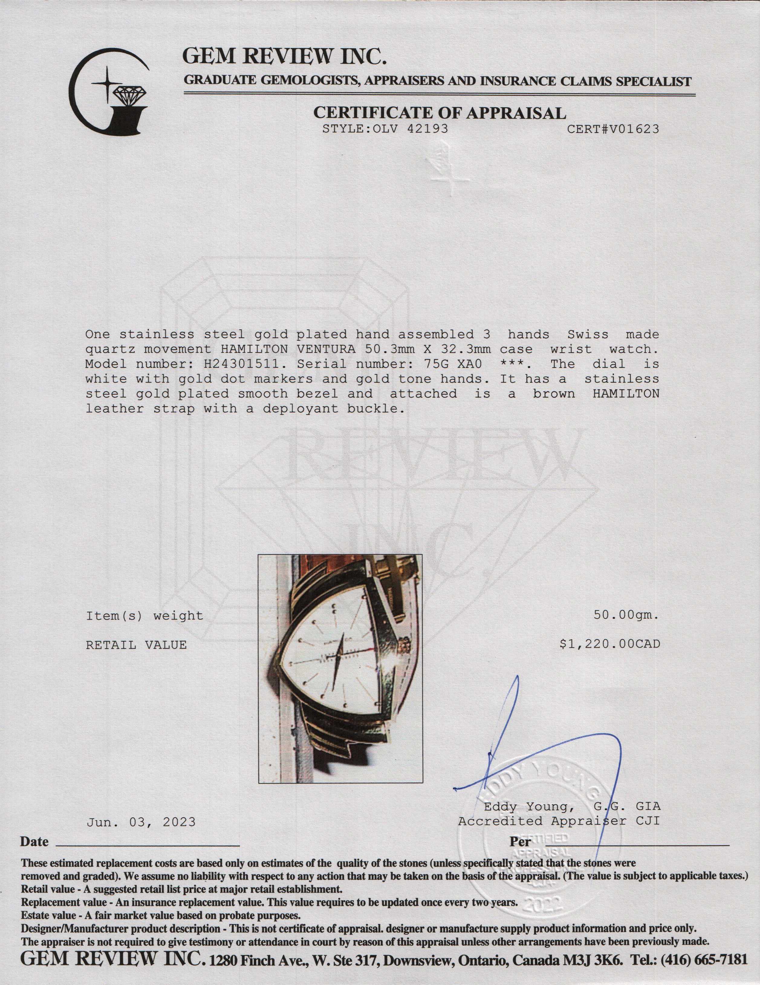 Included Items: Original Hamilton Box, Booklet, Card and Gem Review Appraisal