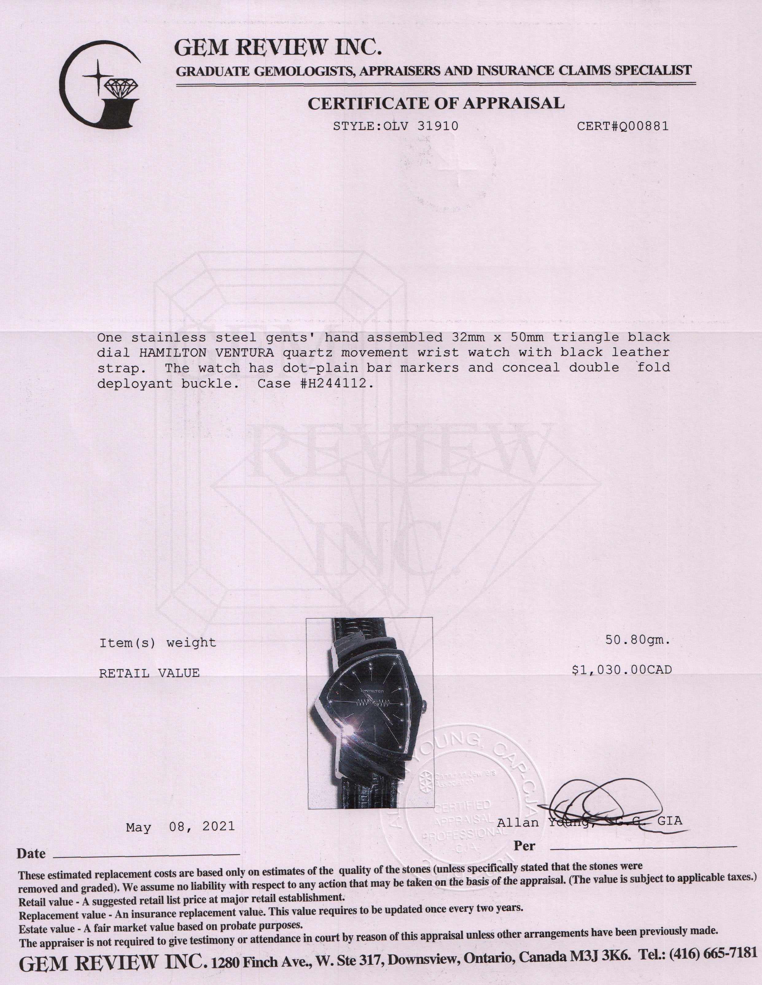 Included Items: Original Hamilton Box, Booklet, and Card and Gem Review Appraisal