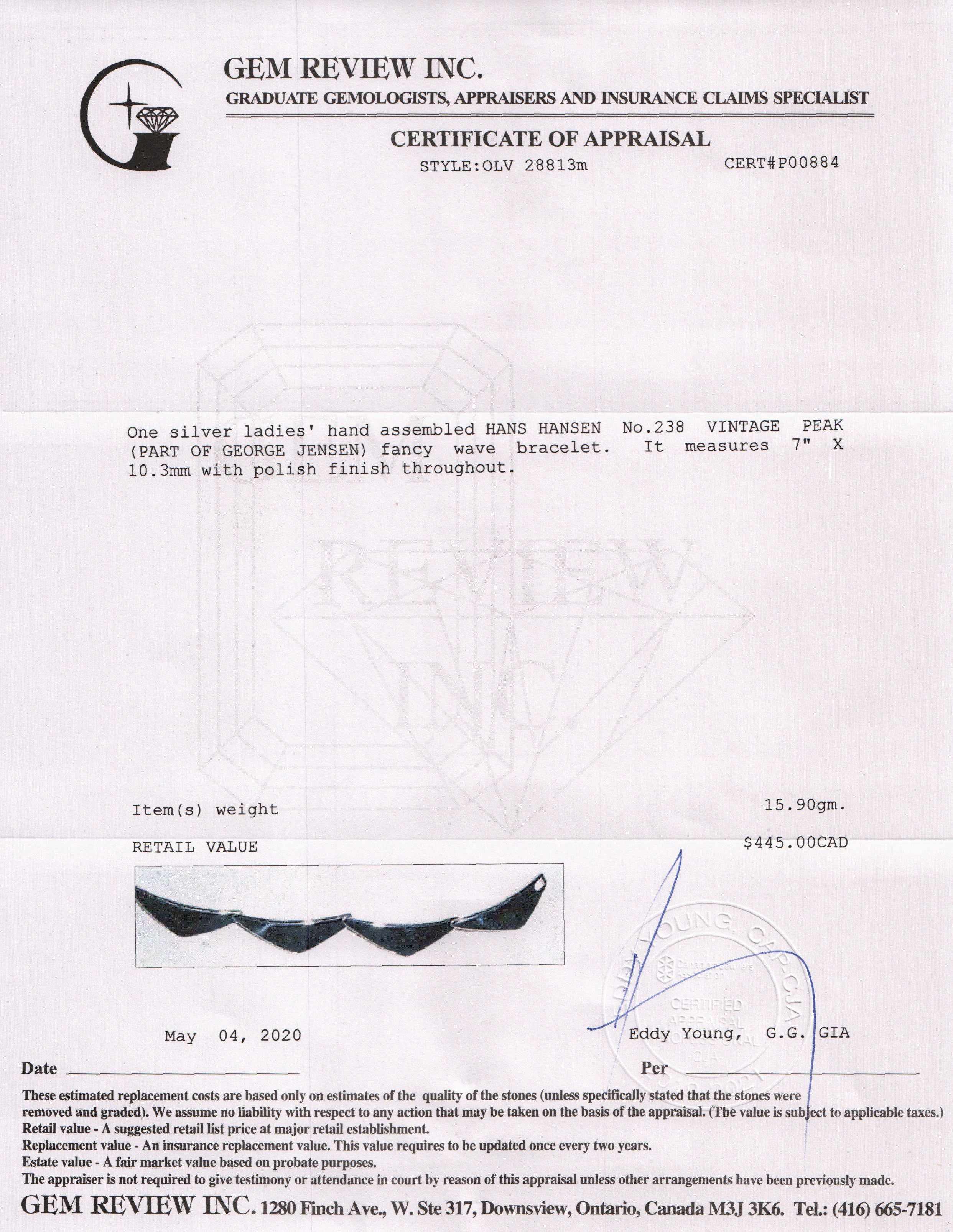 Hans Hansen Vintage No.238 Peak Sterling Silver Bracelet