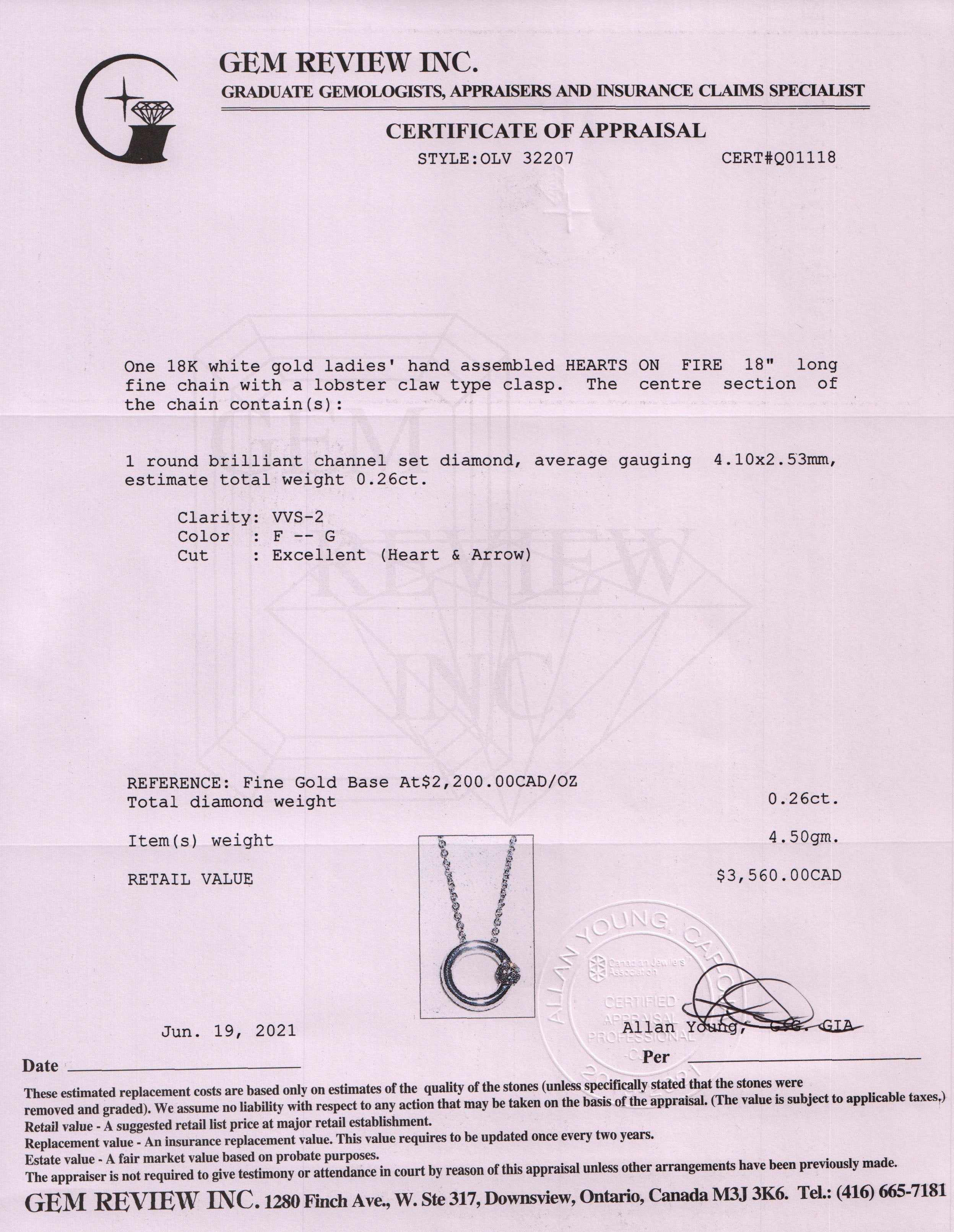 • 1 Round Brilliant Cut Diamond Weighing Approximately 0.26 ct. of VVS2 Clarity, F-G Colour, Excellent Cut