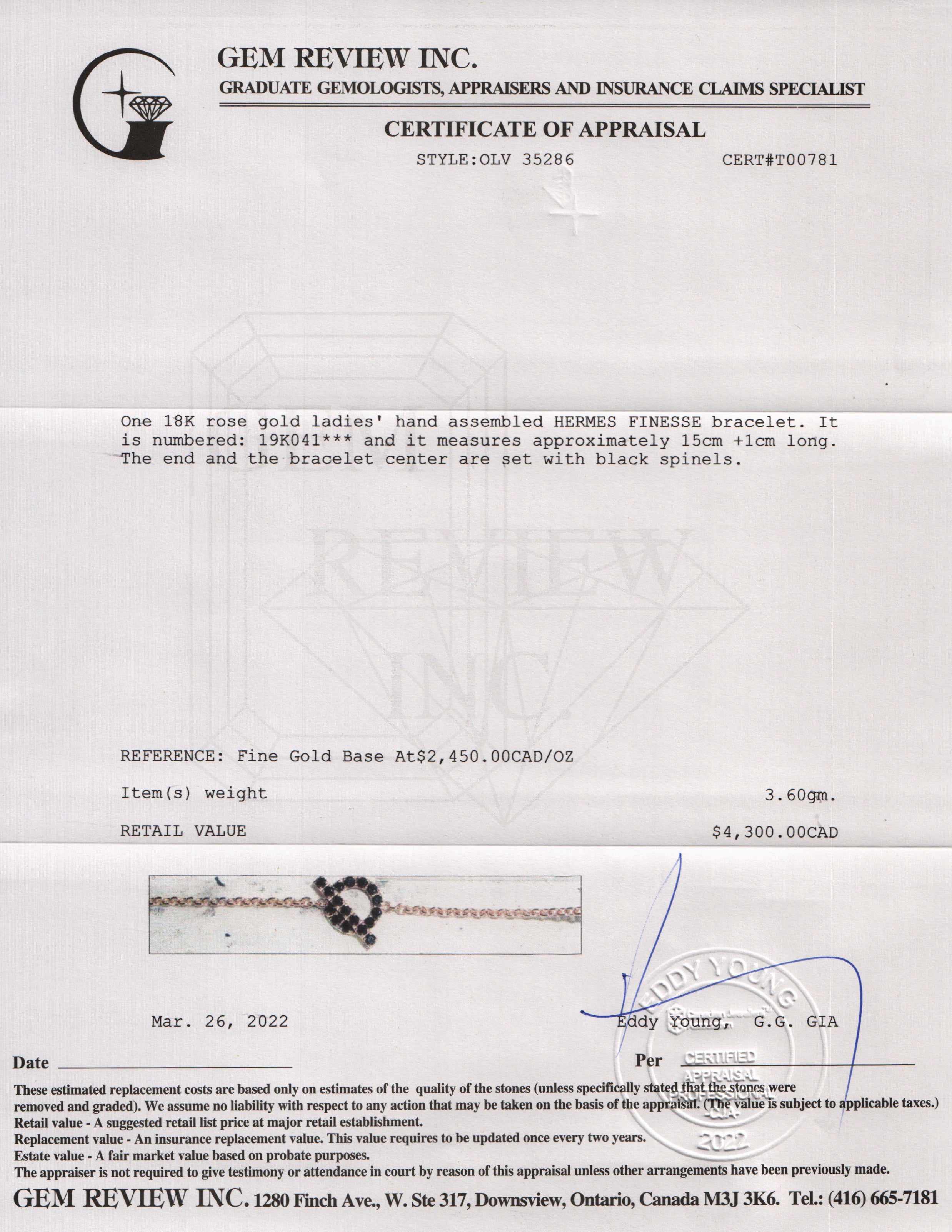 Hermes 18k Rose Gold Black Spinel Finesse Bracelet