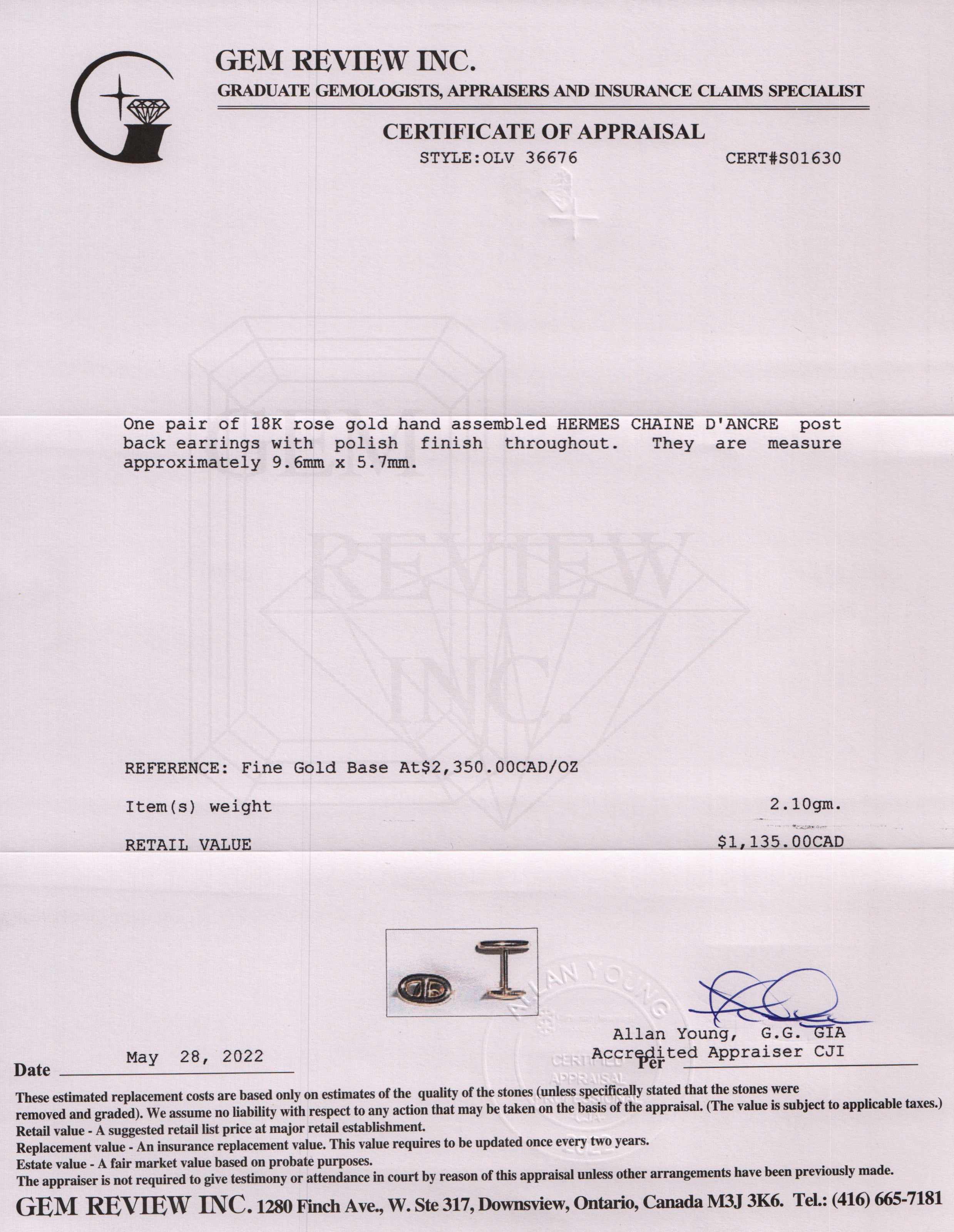 Hermes 18k Rose Gold Chaine D'Ancre Stud Earrings