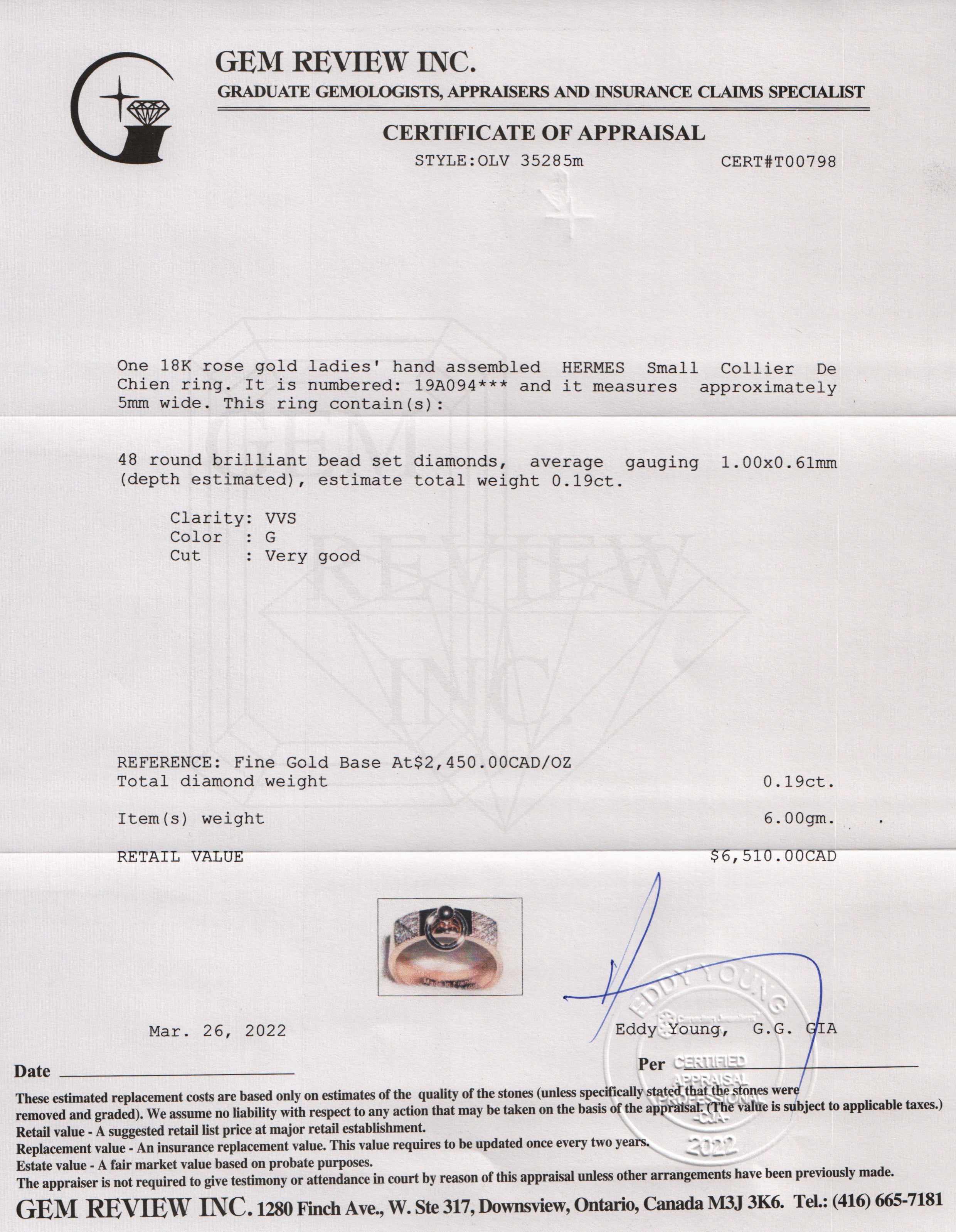 Hermes 18k Rose Gold Diamond Collier de Chien Ring