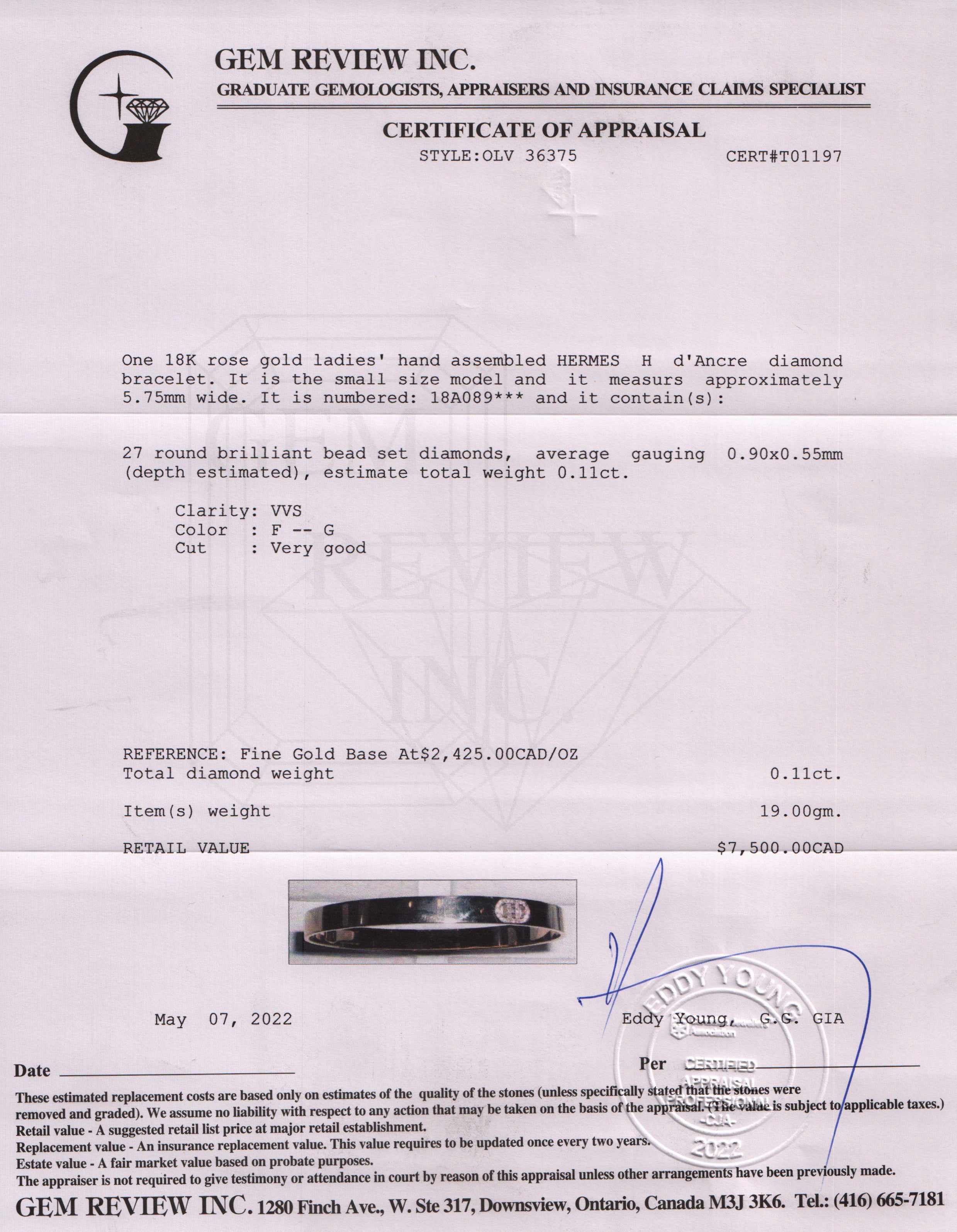 Included Items: Original Hermes Box & Pouch and Gem Review Appraisal
