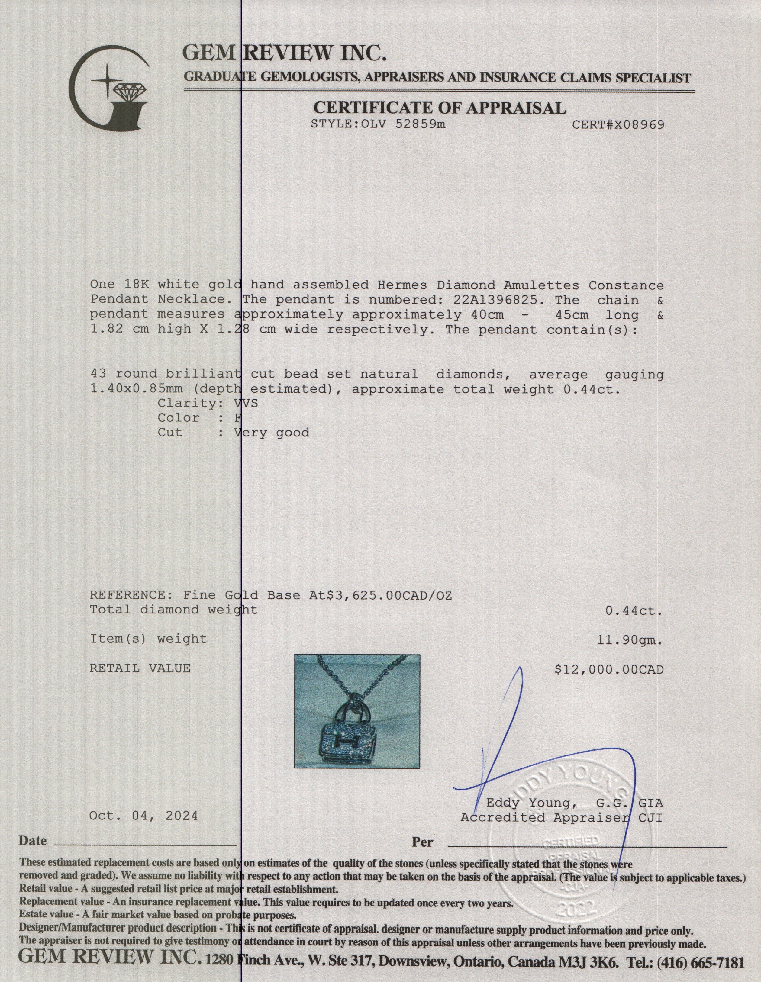 18k White Gold Diamond Amulettes Constance Pendant Necklace w/ Box