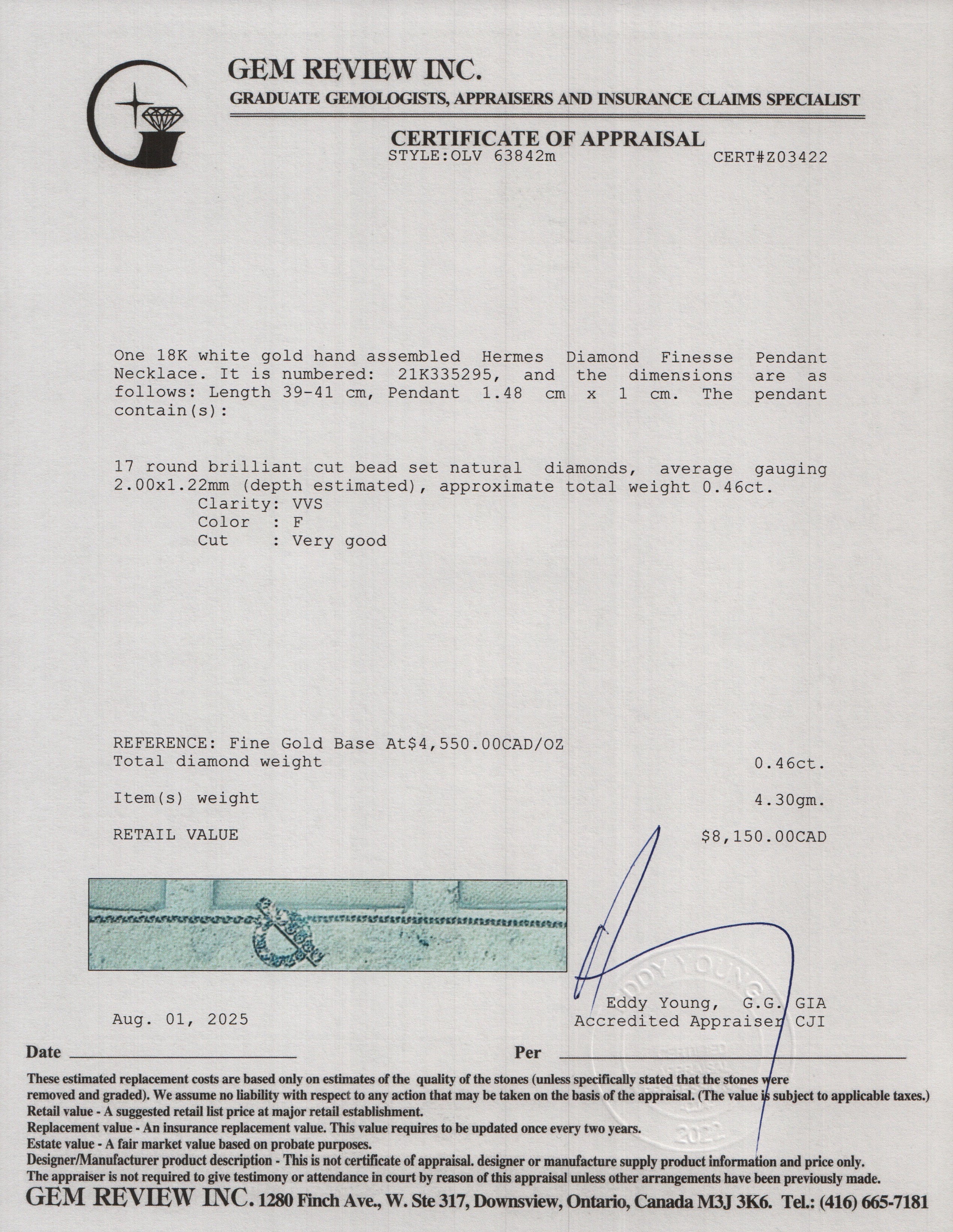 18k White Gold Diamond Finesse Pendant Necklace w/ Box & Receipt