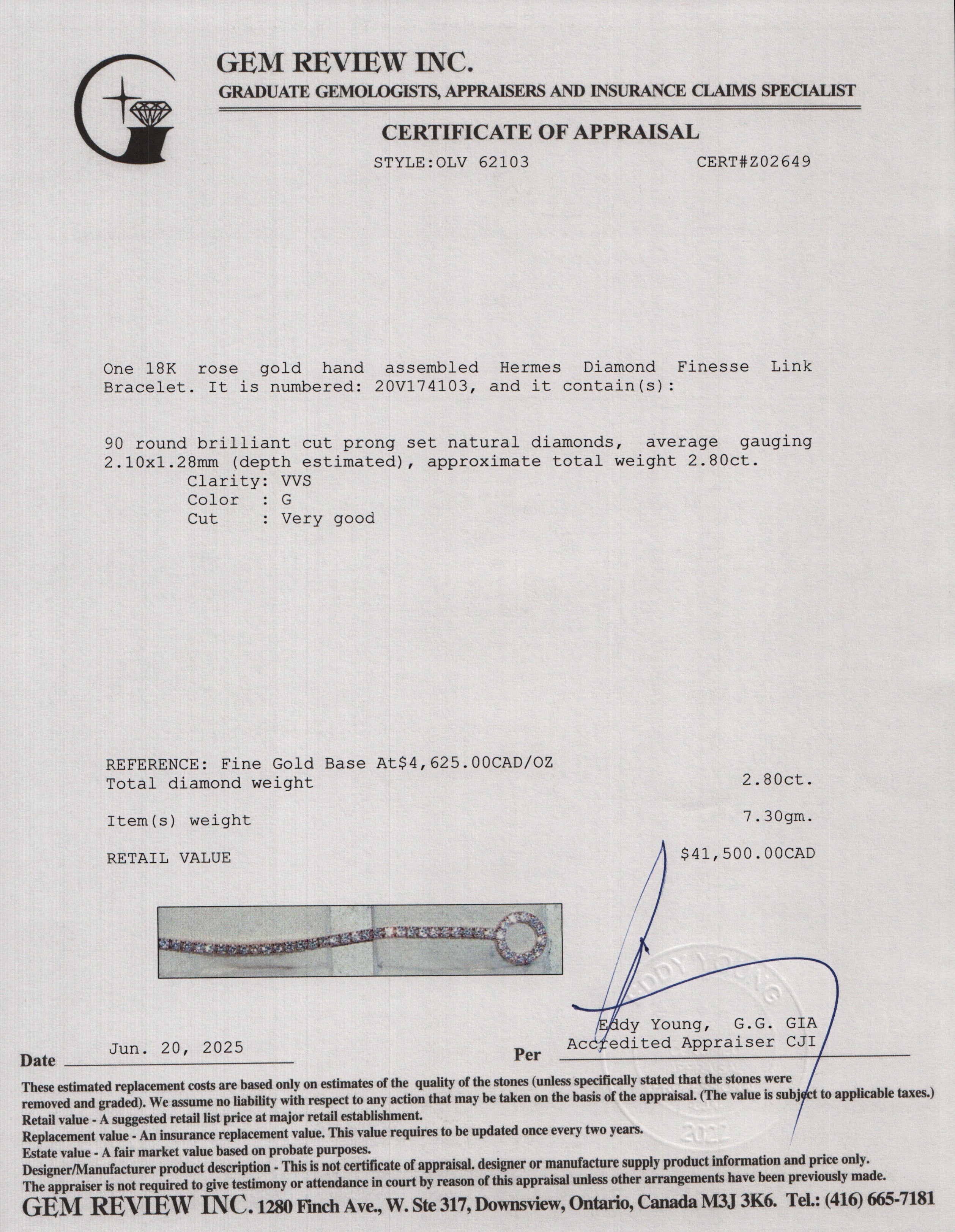 2022 18k Rose Gold Diamond Finesse Link Bracelet w/ Box & Receipt
