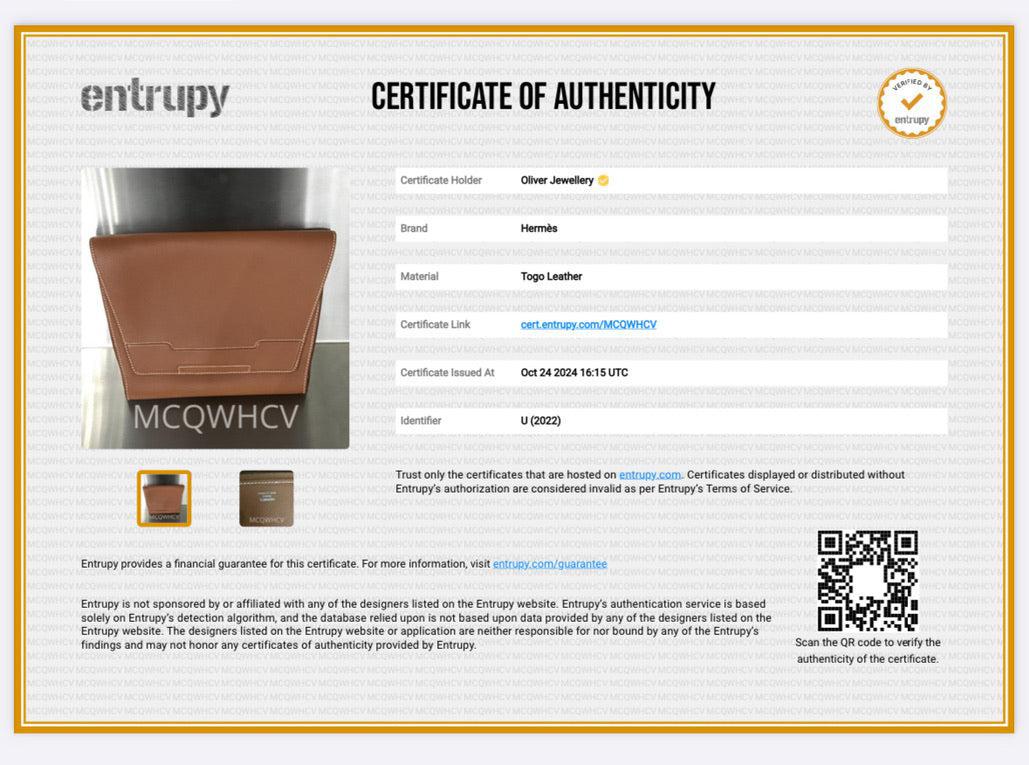 Wrist Strap Not Included, Entrupy Certificate of Authenticity