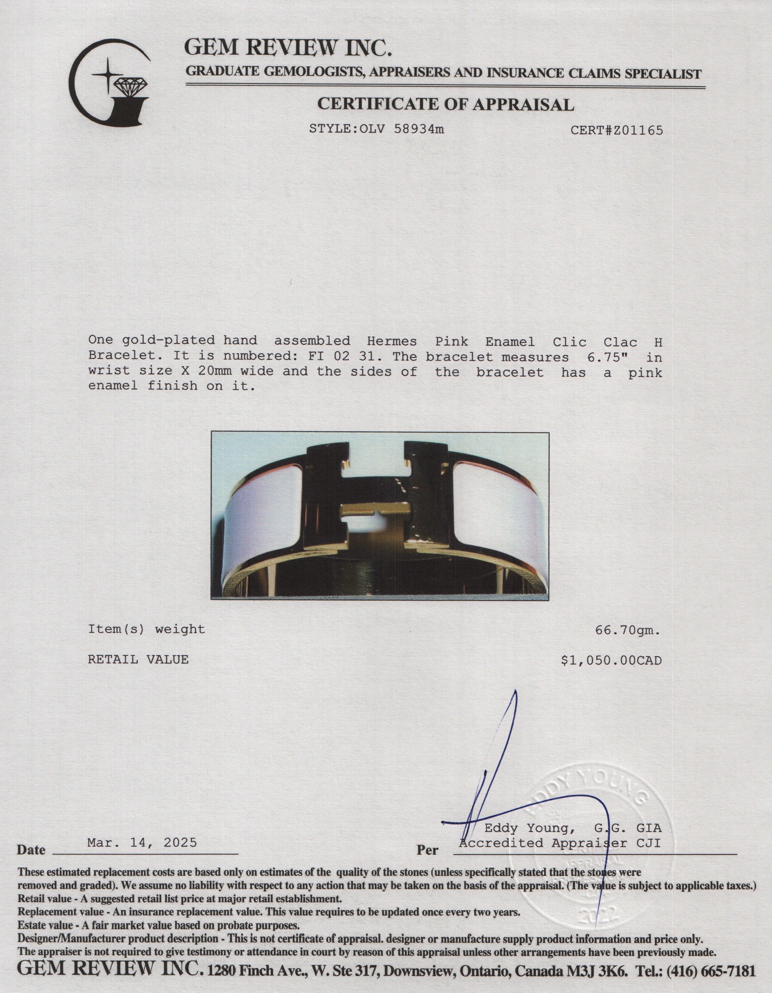 2024 Gold-Plated Pink Enamel Clic Clac H Bracelet w/ Box & Receipt