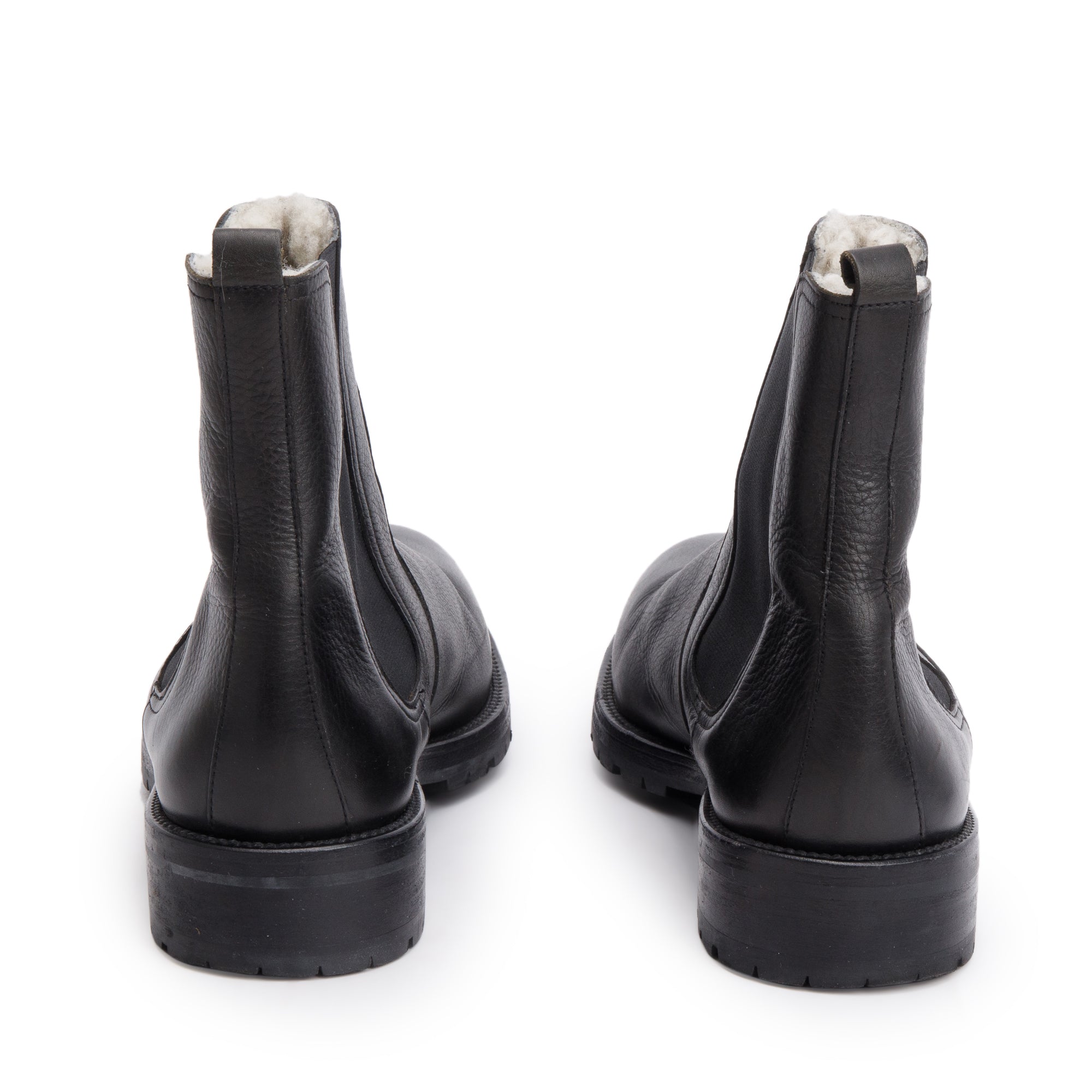 Black Calfskin Leather Chelsea Ankle Boots, Size 42.5