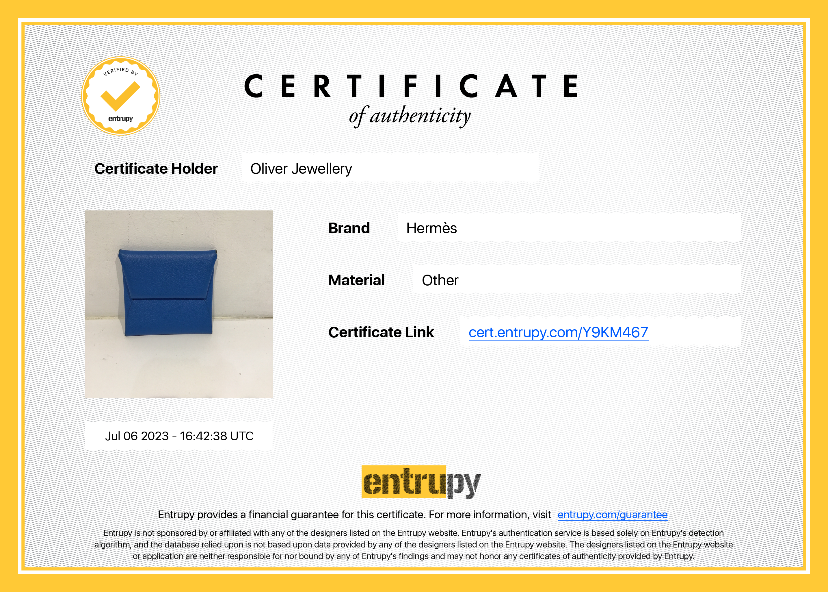 Included Items: Original Hermes Box & Entrupy Certificate of Authenticity #: Y9KM467