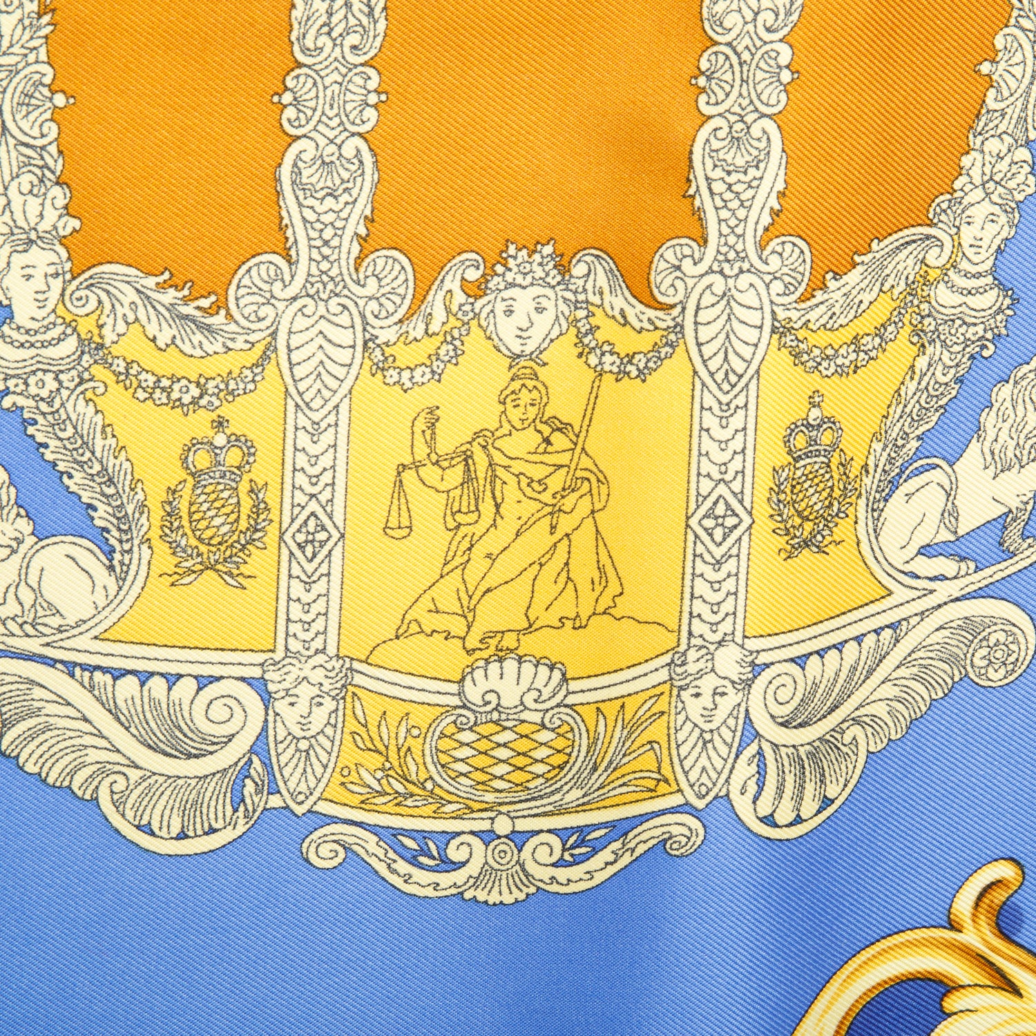 Blue Multicolor 'Carrolses d'Or' Silk Scarf 90 w/ Box