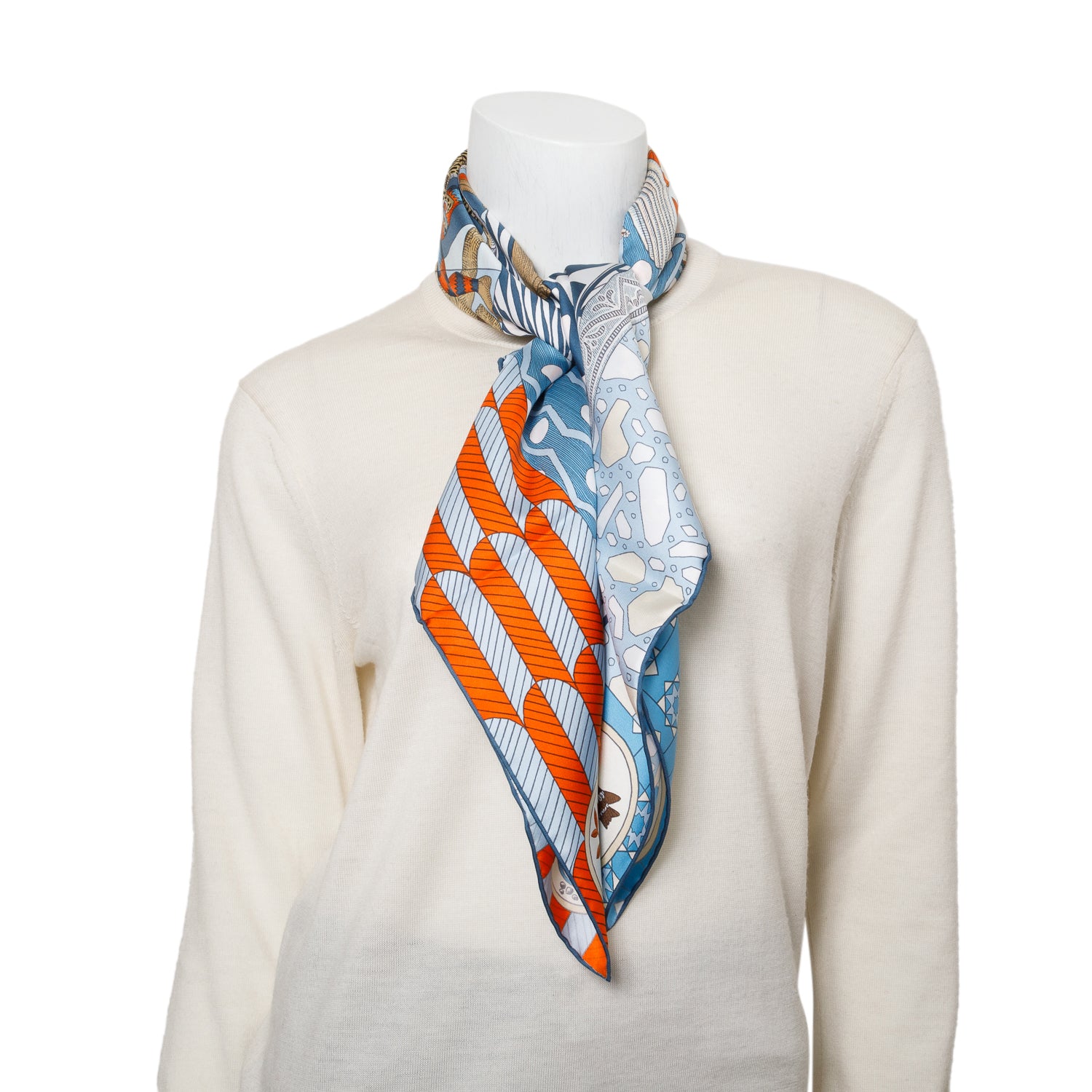 Blue/Multicolor 'La Danse Des Amazones' Silk Scarf 90 w/ Box