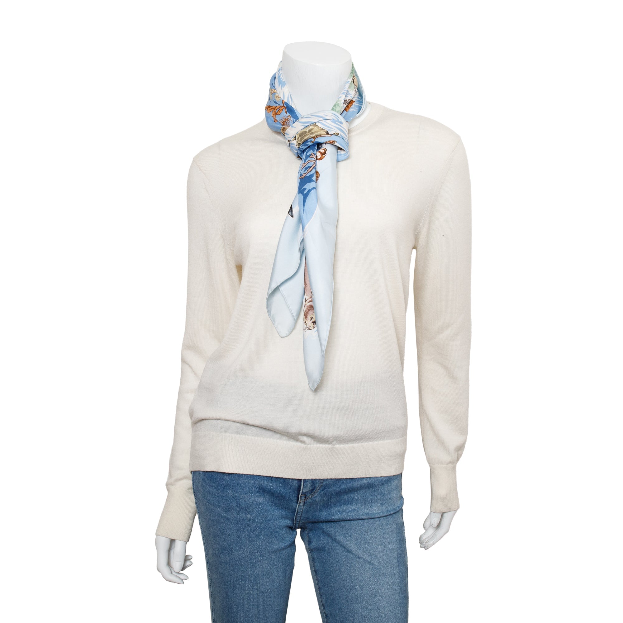 Blue & Multicolor 'La Vie Precieuse de la Mediterranee' Silk Scarf 90 w/ Box