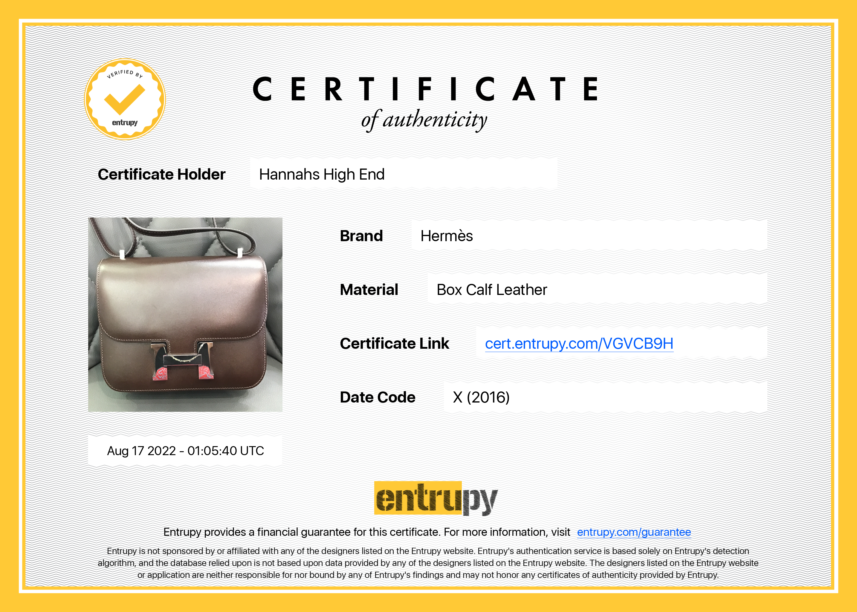 Included Items: Original Hermes Dust Bag & Entupy Certificate of Authenticity #: VGVCB9H